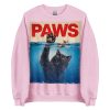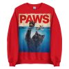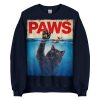 Snygg sweatshirt med en välkänd omgjord filmposter med en katt som jagar en råtta och den nya titeln ’Paws’ som tryck på framsidan. Tröjan passar alla män och kvinnor som älskar katter och skräckfilmer. Välj mellan hela 12 olika färger.