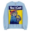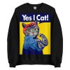 Sweatshirt dekorerad med ett känt motiv med en katt och texten ’Yes I cat’ som tryck på framsidan. Materialet är en mjuk och skön blandning av bomull och polyester. Välj mellan 12 olika färger.