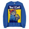 Sweatshirt dekorerad med ett känt motiv med en katt och texten ’Yes I cat’ som tryck på framsidan. Passar strålande till både män och kvinnor. Du kan välja mellan 12 olika färger tillverkade i blandad bomull och polyester.