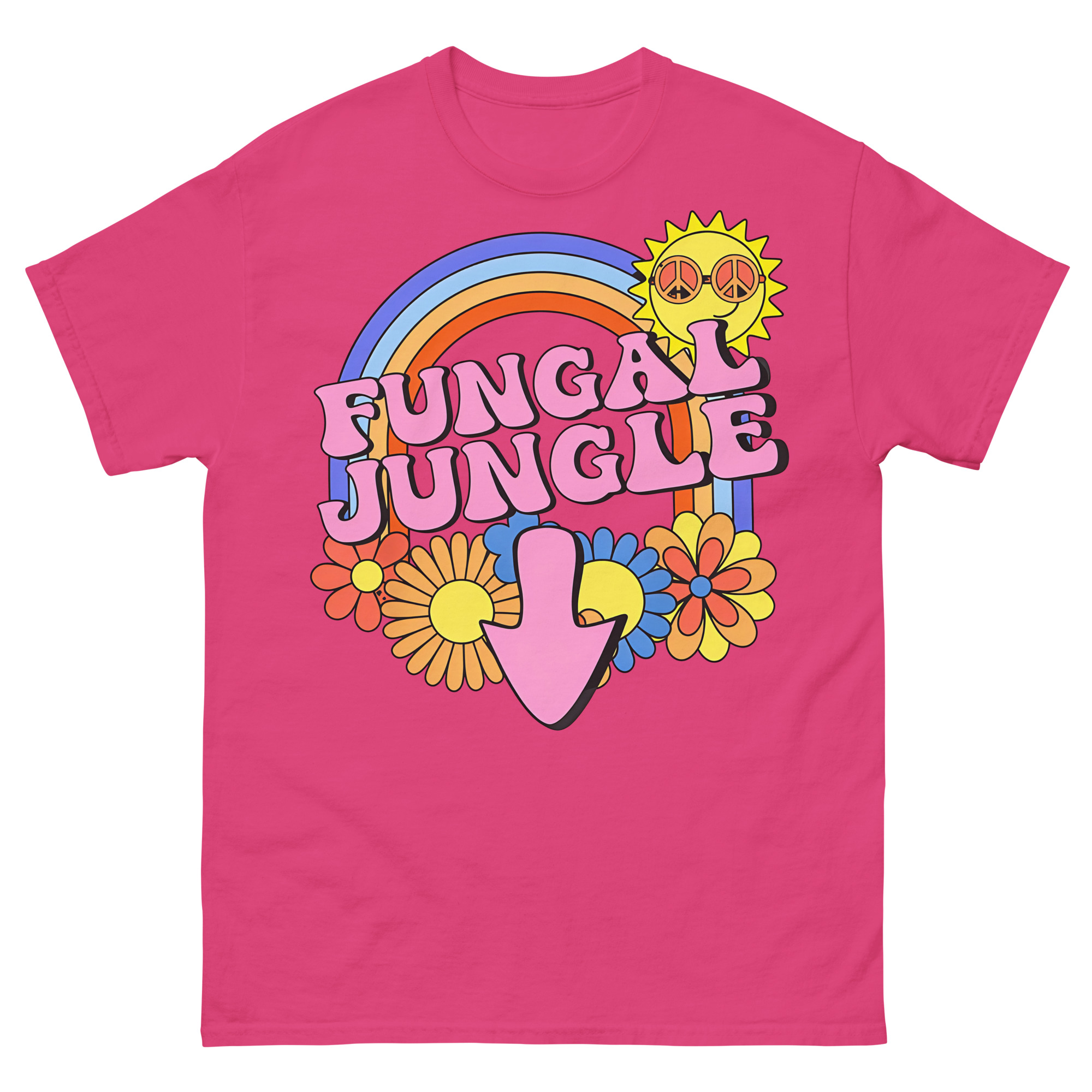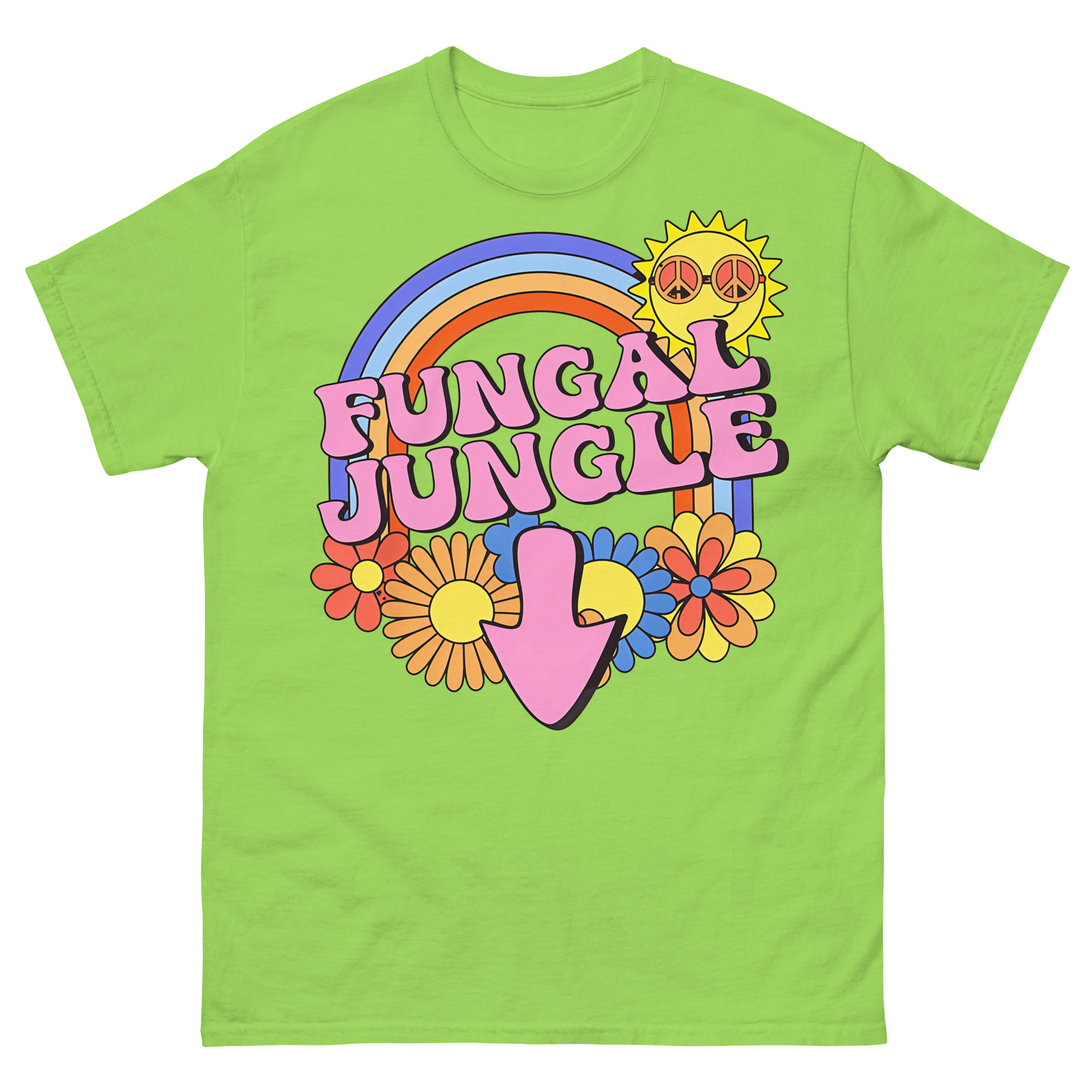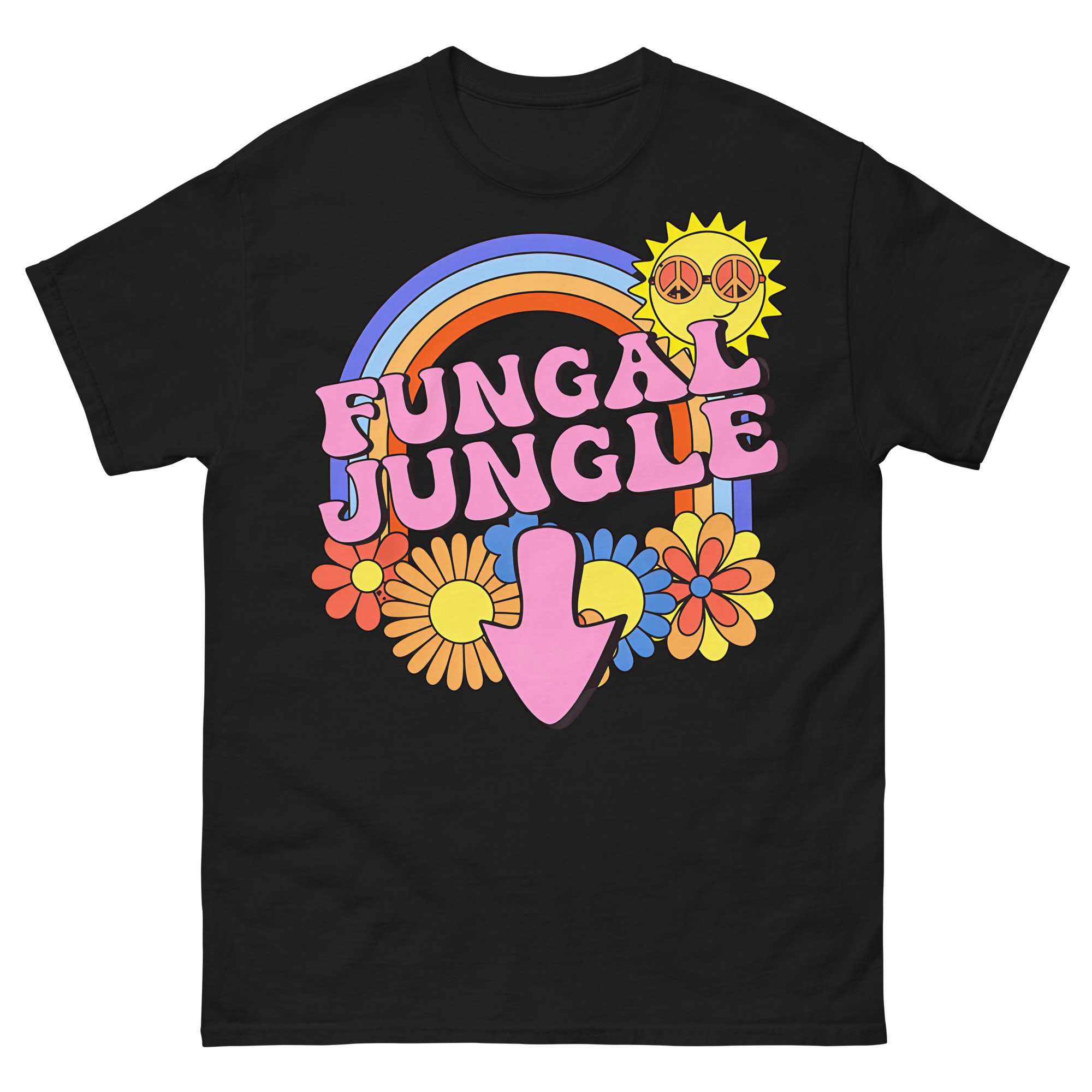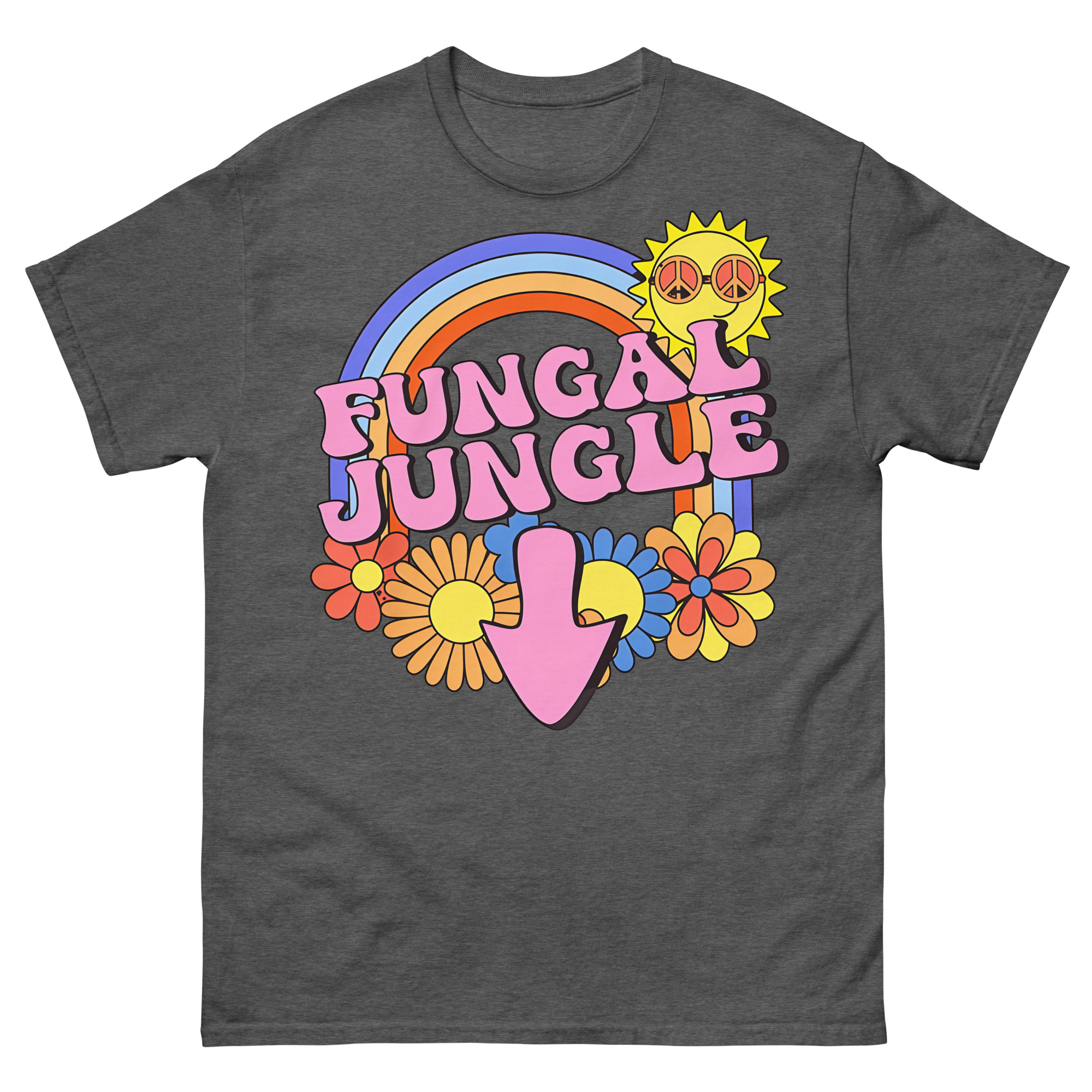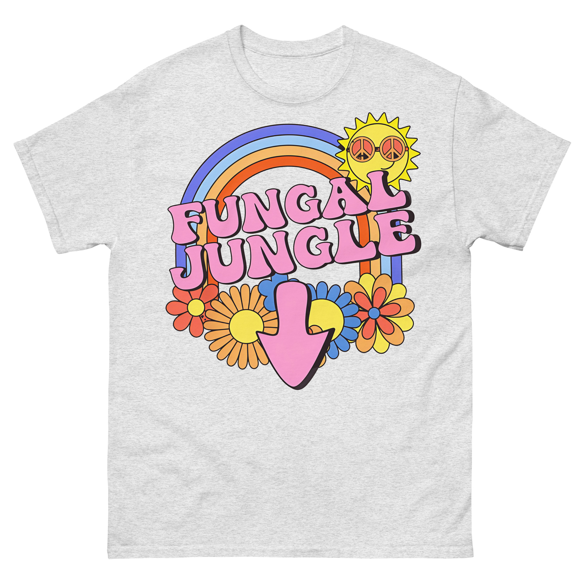 T-shirt dekorerad med blommor, en regnbåge och texten ’Fungal jungle’ som tryck på framsidan. Passar perfekt till både kvinnor och män som älskar humor. Välj mellan 14 olika färger.
