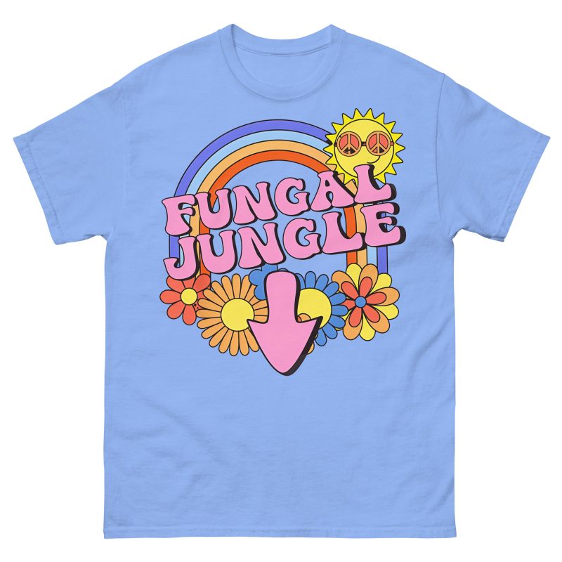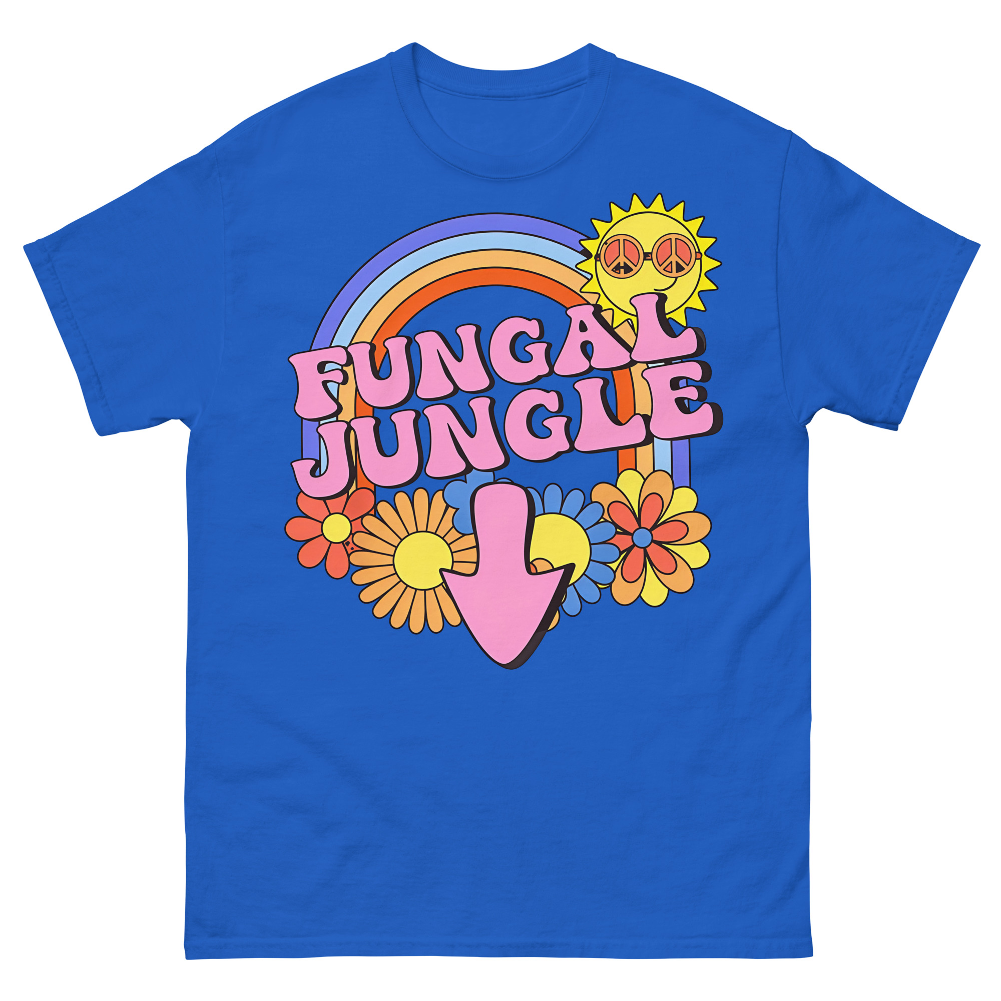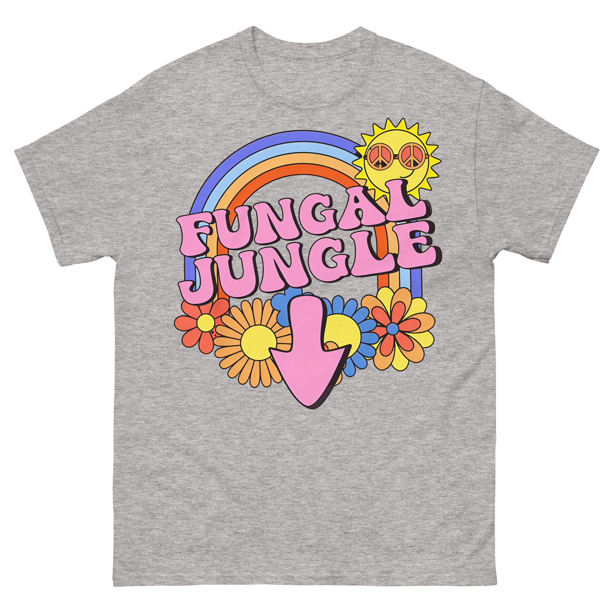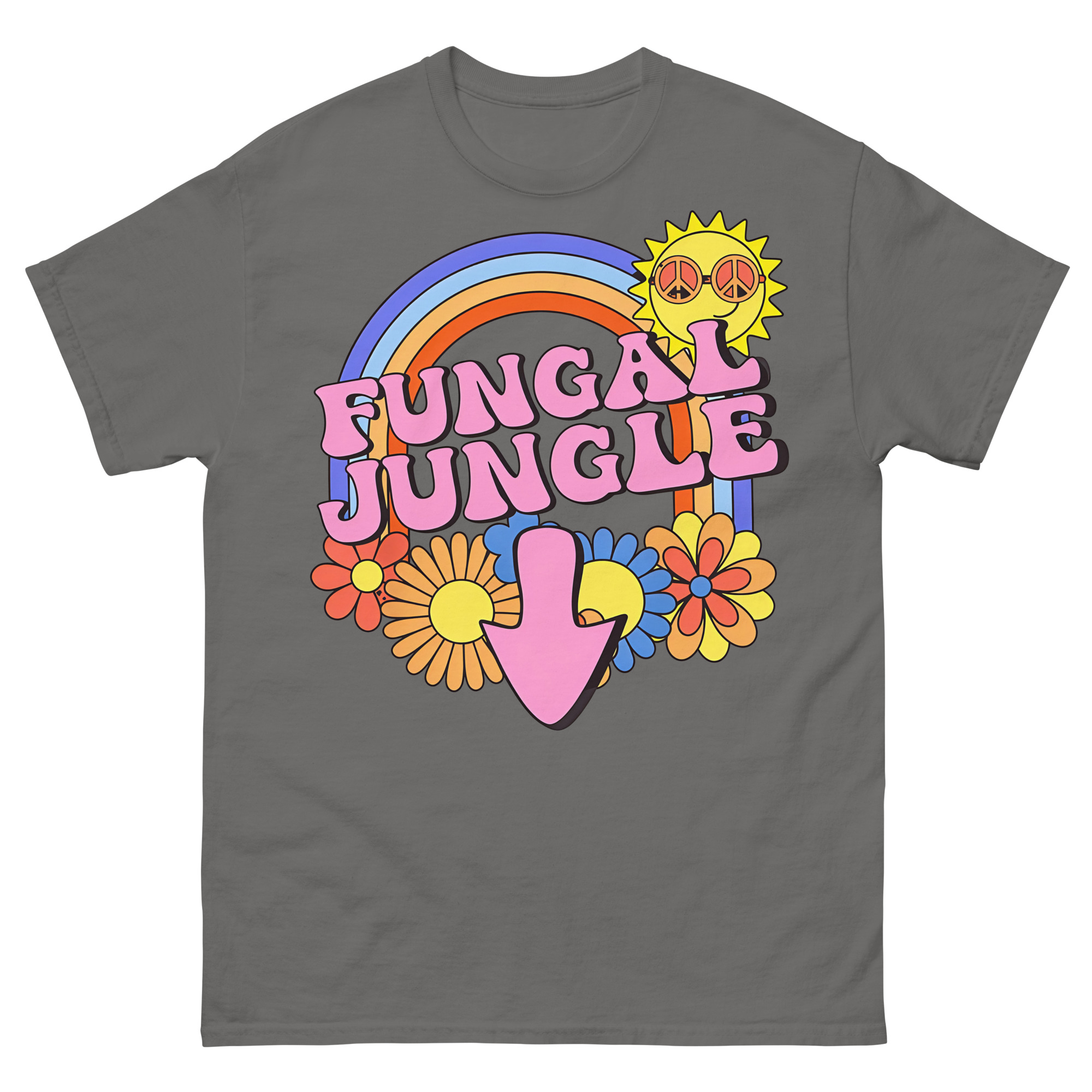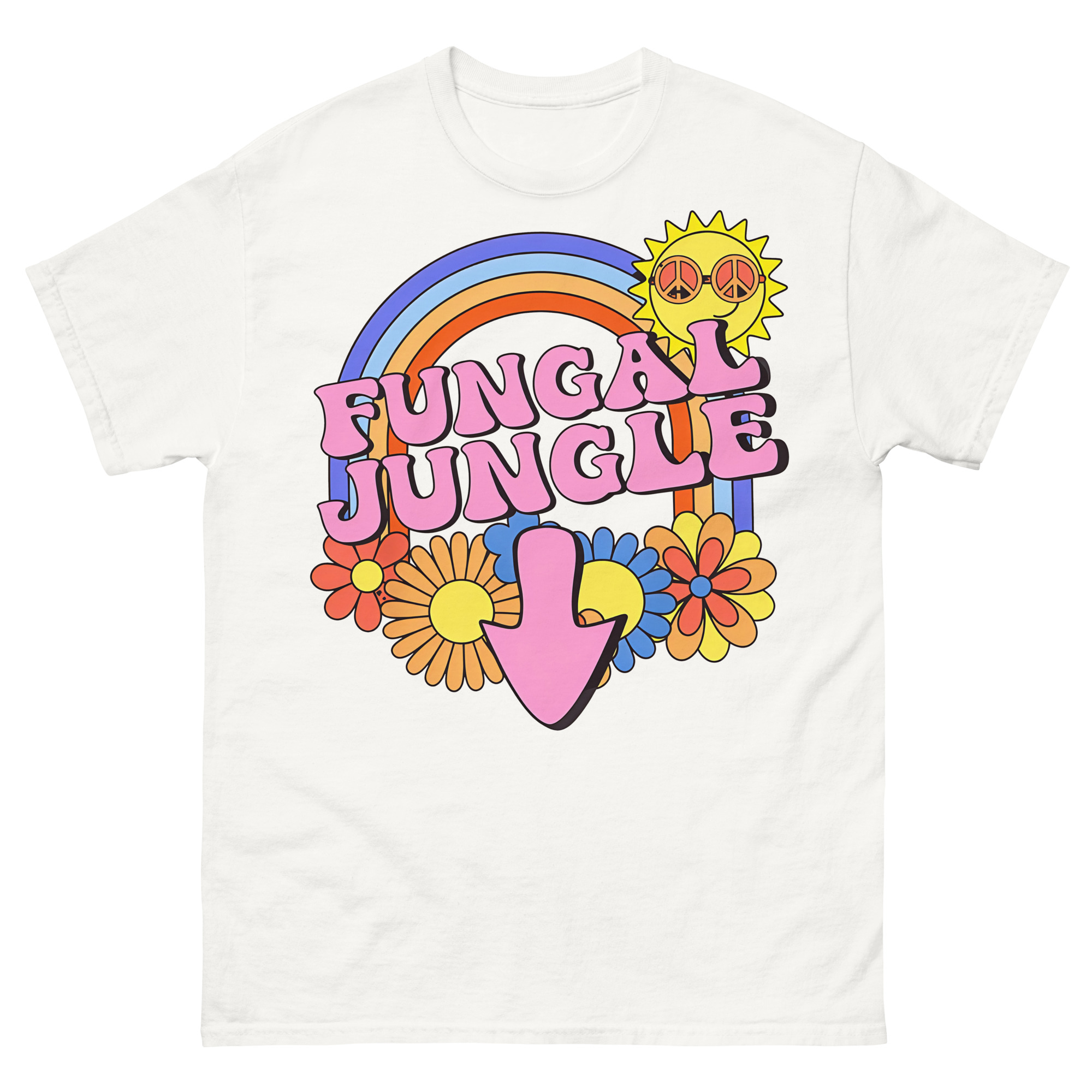 T-shirt dekorerad med blommor, en regnbåge och texten ’Fungal jungle’ som tryck på framsidan. Passar perfekt till både kvinnor och män som älskar humor. Välj mellan 14 olika färger.