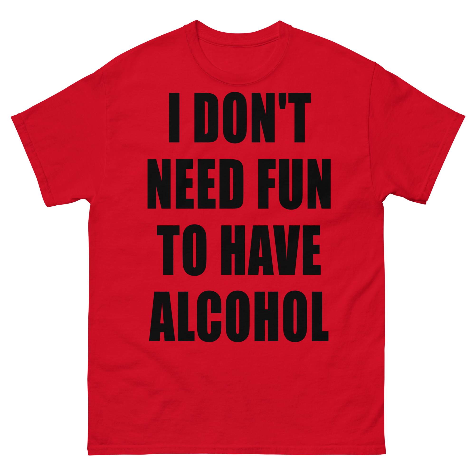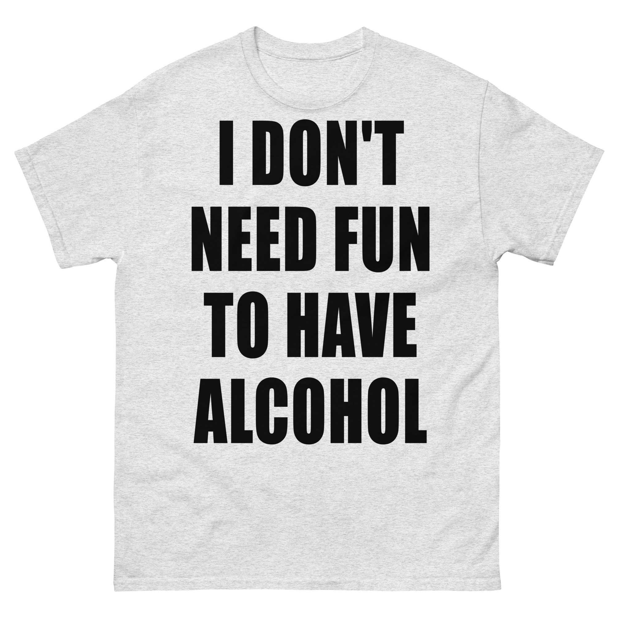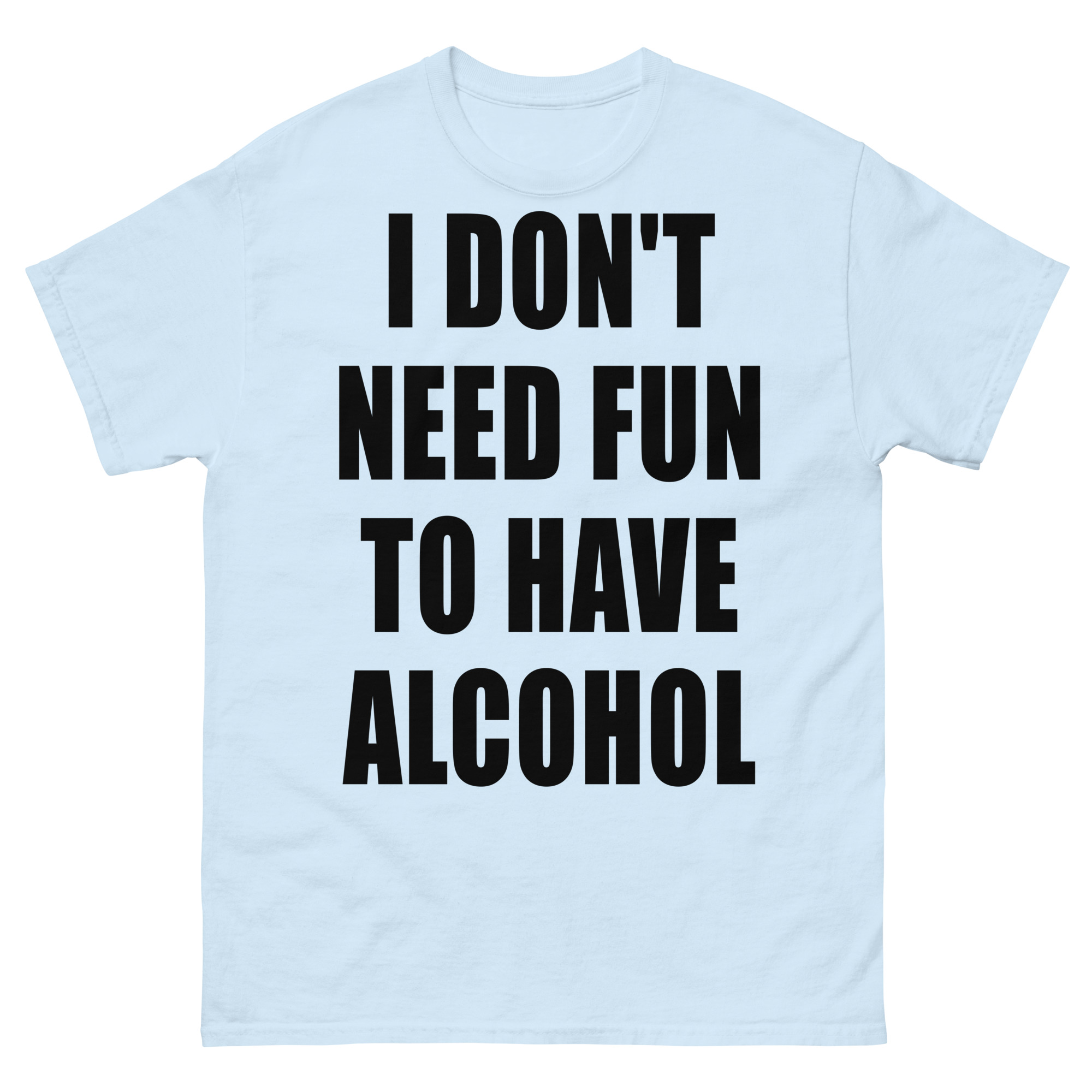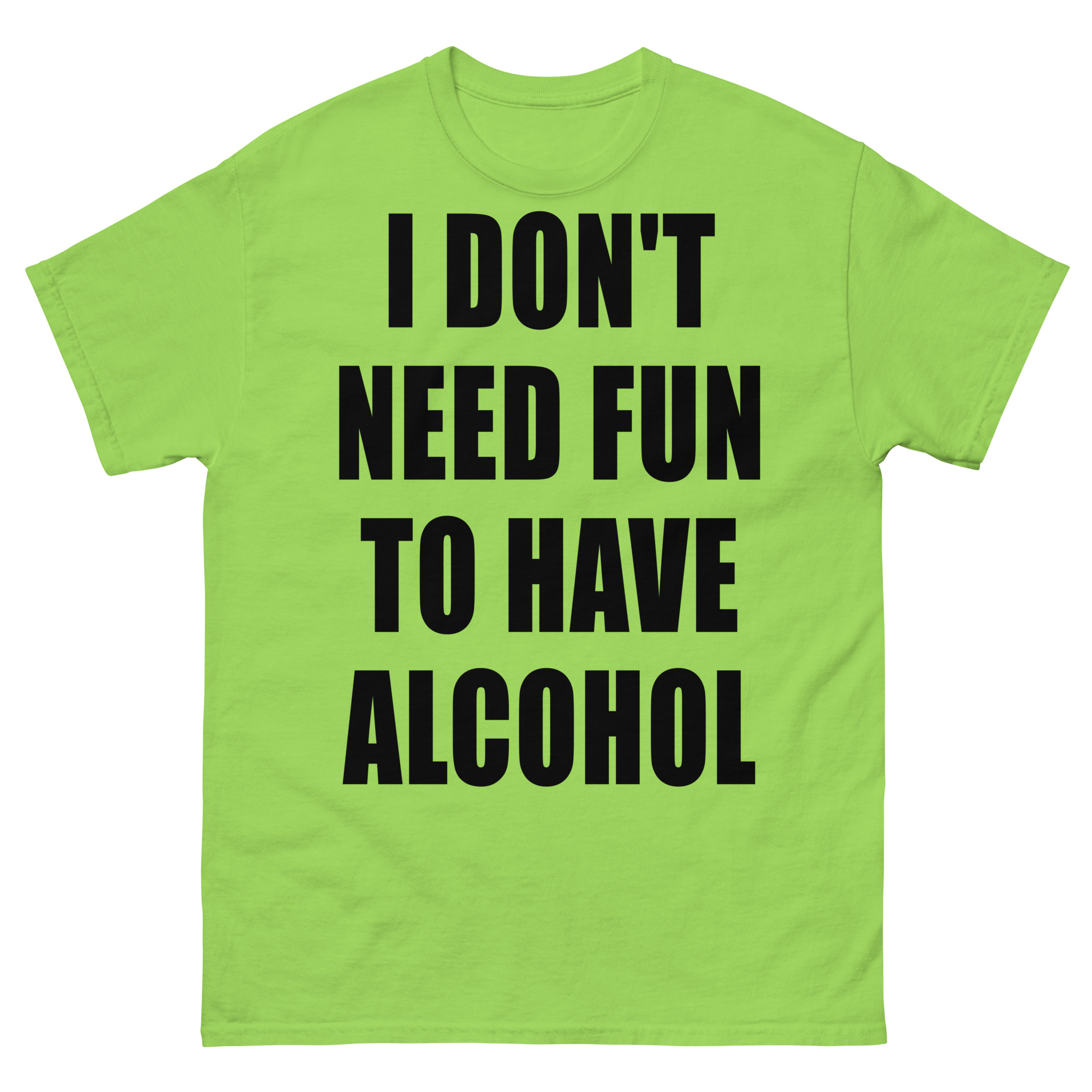 T-shirt dekorerad med texten ’I don’t need fun to have alcohol’ som dekoration på framsidan. Passar alla män och kvinnor som älskar alkohol. Du kan välja mellan 15 olika färger.