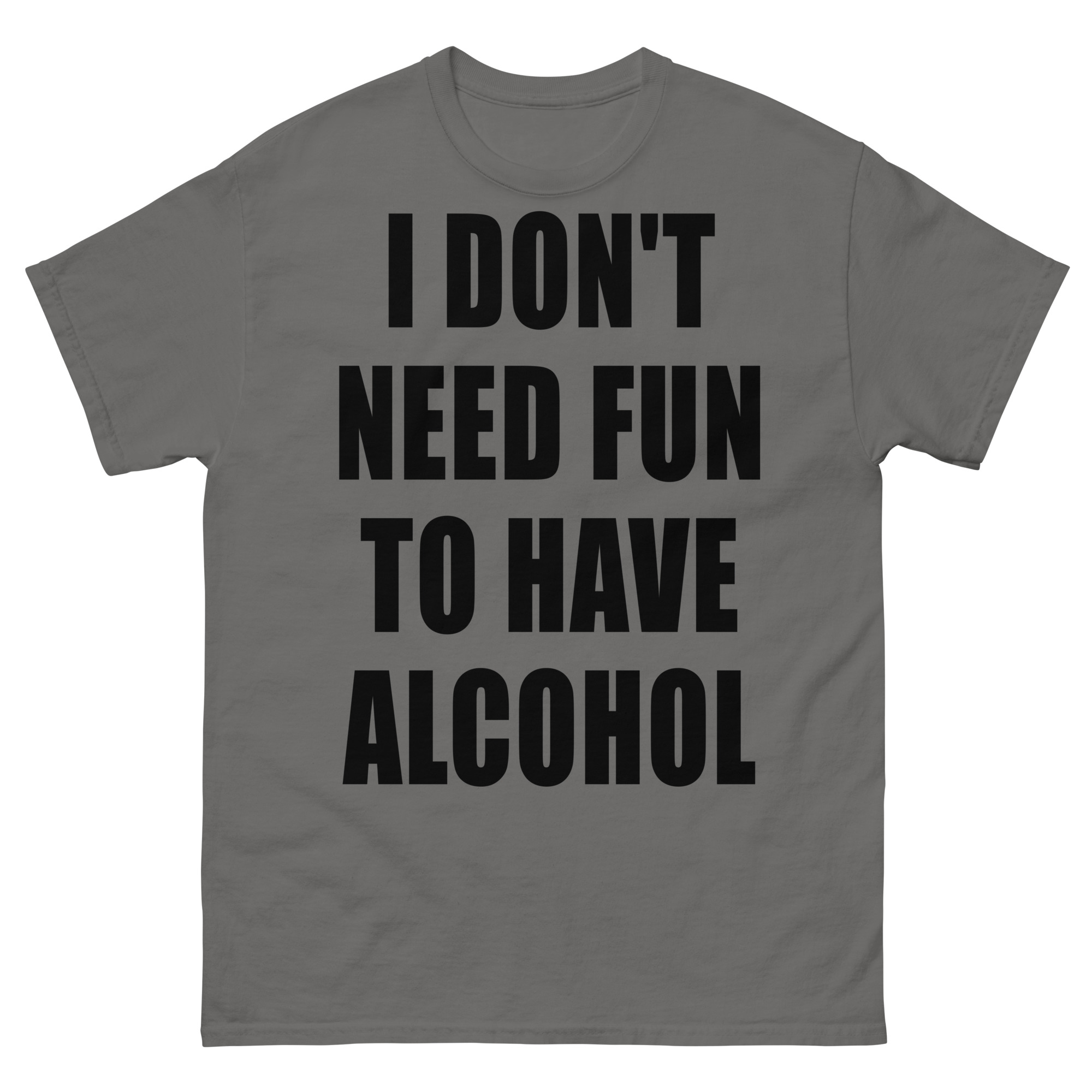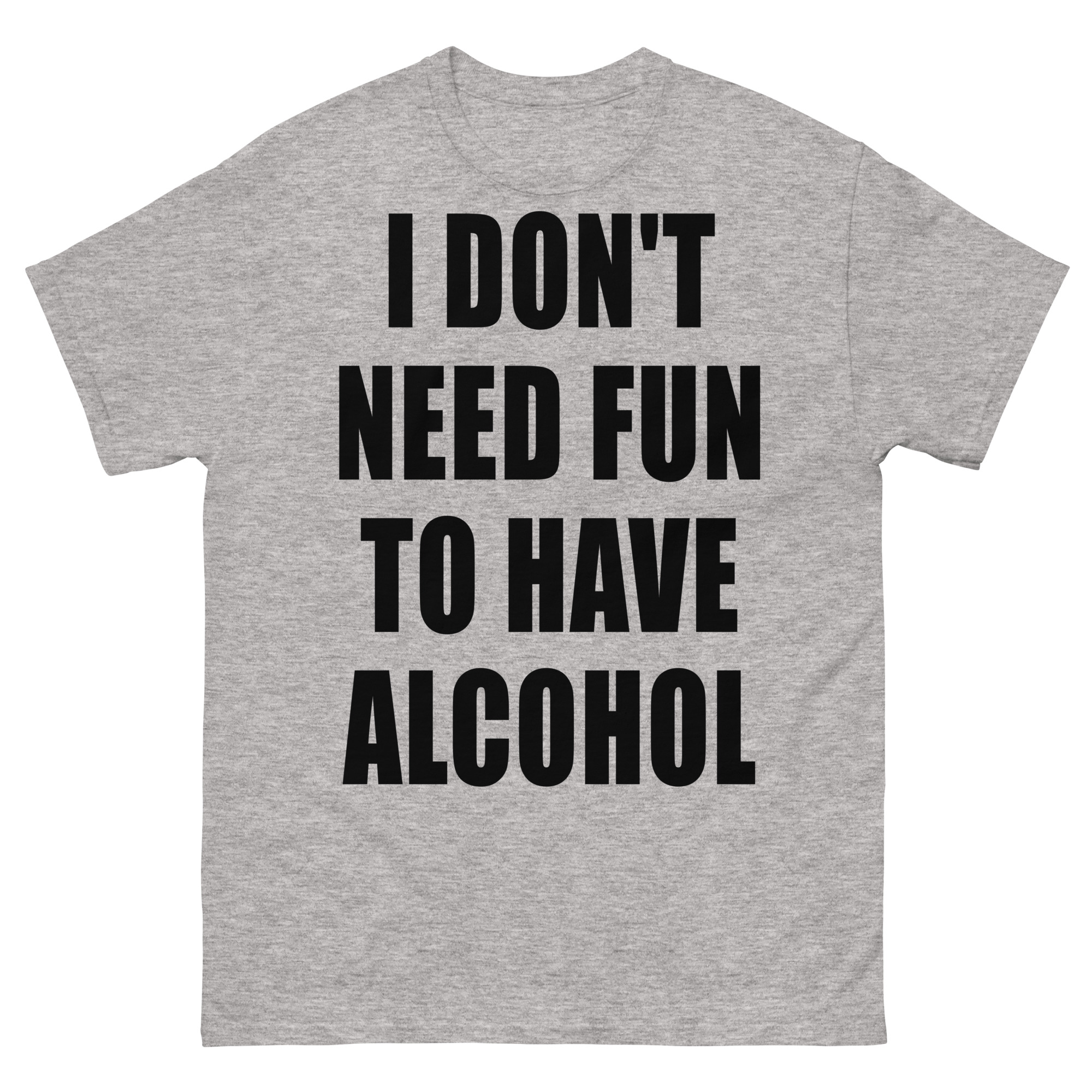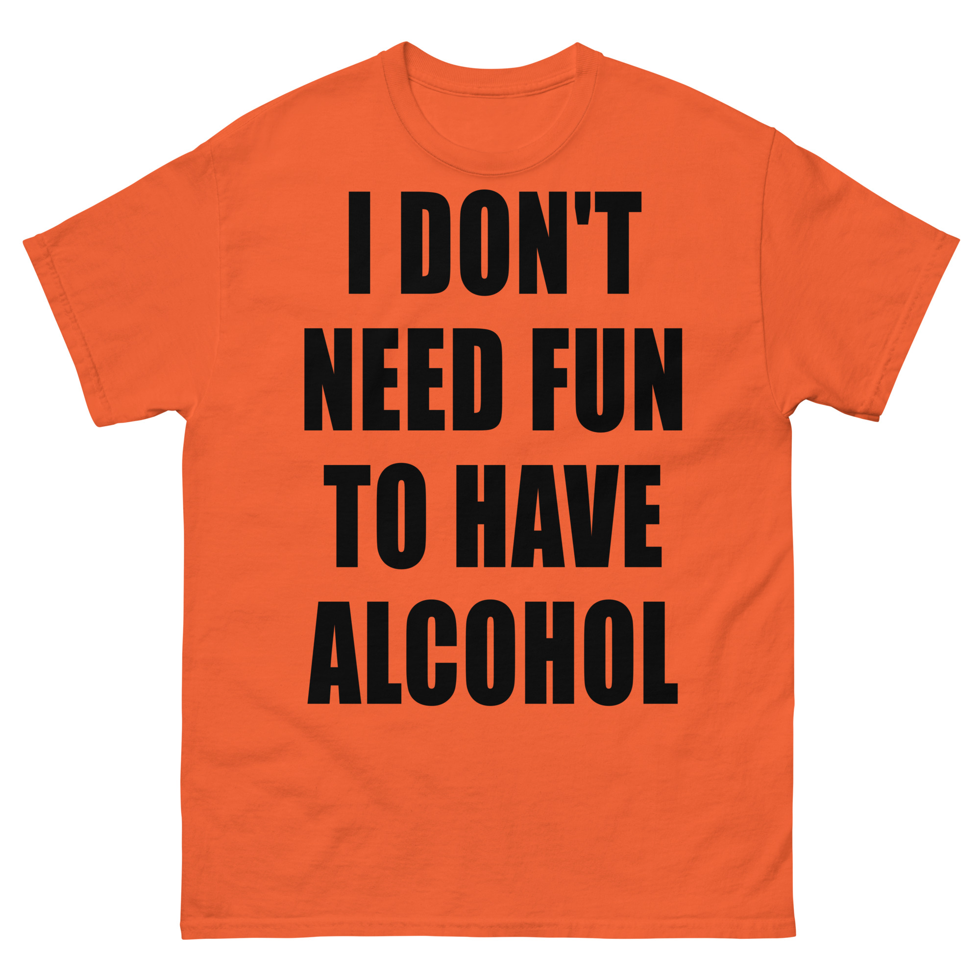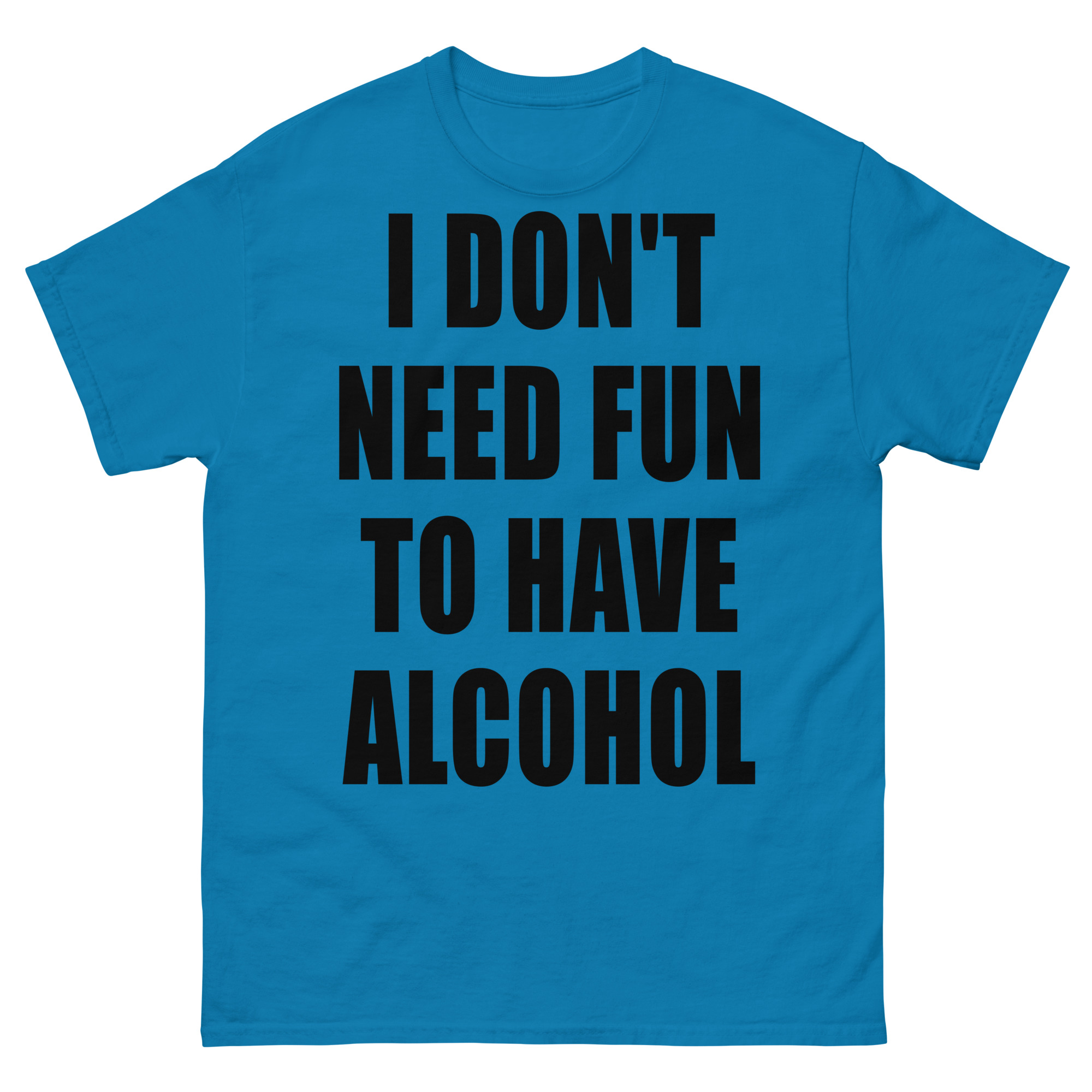 T-shirt dekorerad med texten ’I don’t need fun to have alcohol’ som dekoration på framsidan. Passar alla män och kvinnor som älskar alkohol. Du kan välja mellan 15 olika färger.