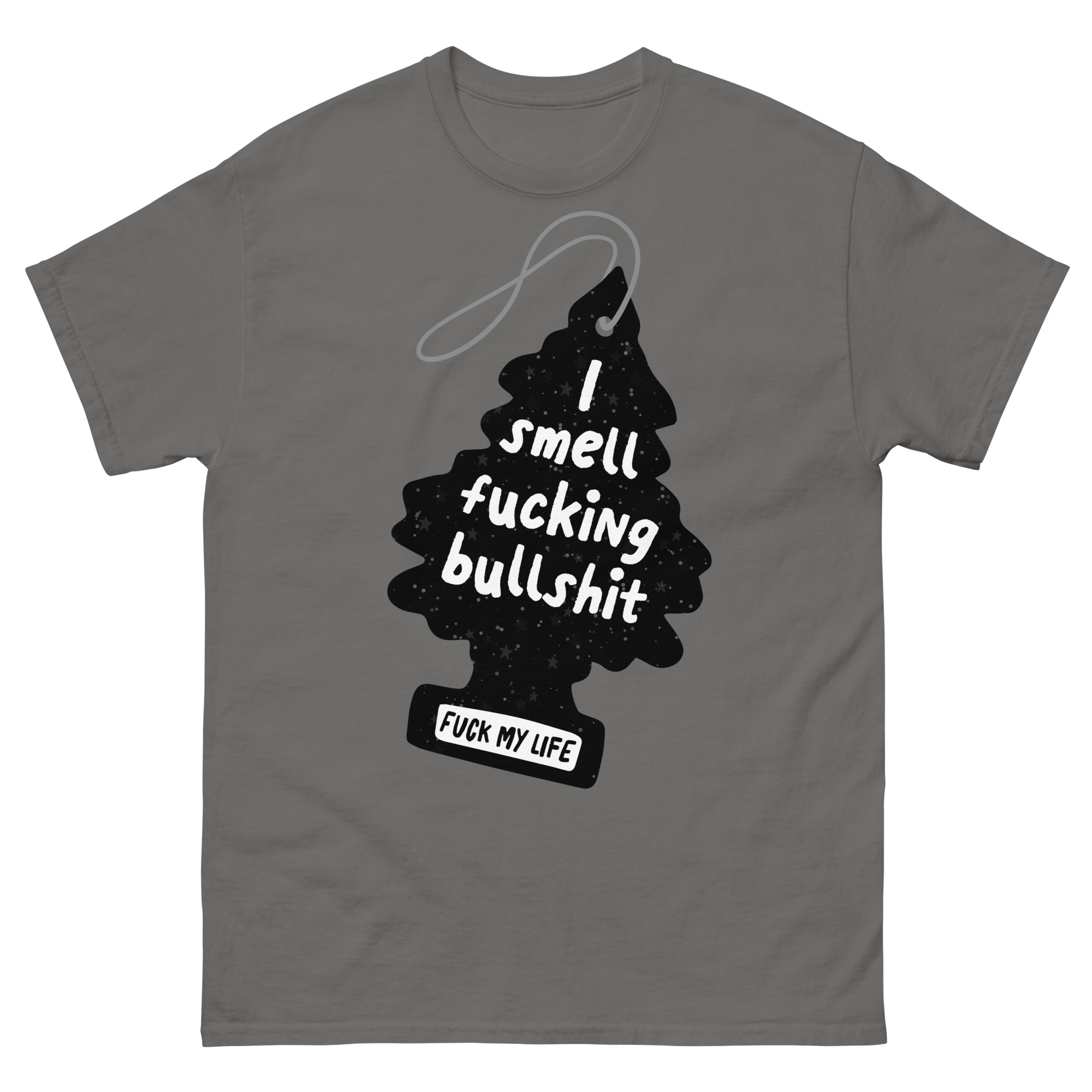 Skön t-shirt med en svart doftgran med texten ’I smell fucking bullshit’ som tryck på framsidan. Tröjan passar alla som älskar humoristiska tryck. Du kan välja mellan hela 14 olika färger.