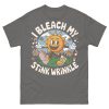 T-shirt dekorerad med en glad sol och texten ’I bleach my stink wrinkle’ som dekoration på framsidan. Passar alla män och kvinnor som älskar humor. Du kan välja mellan sex olika färger.