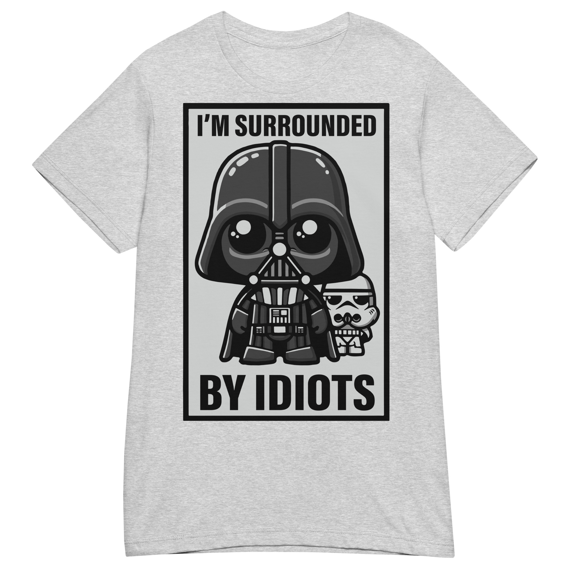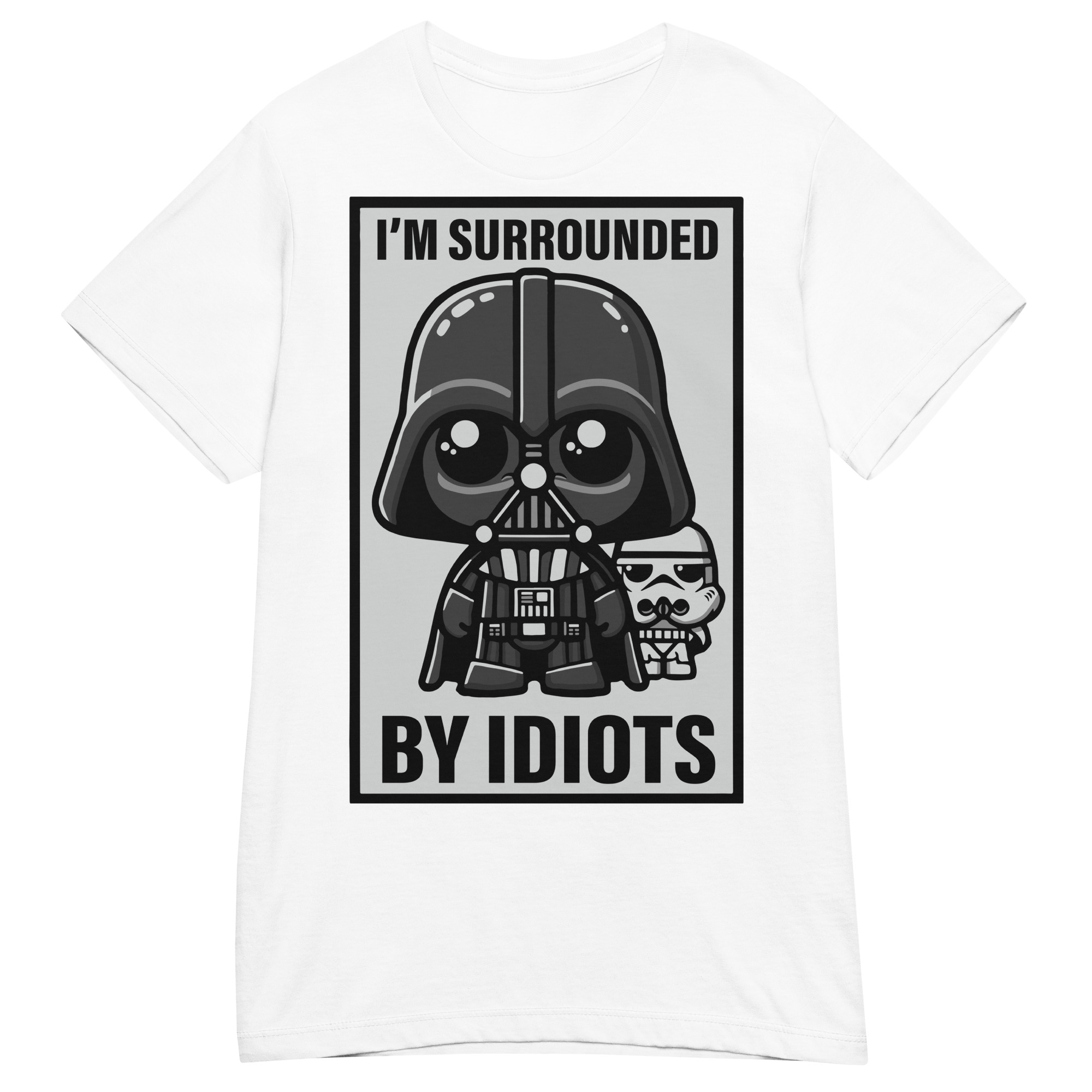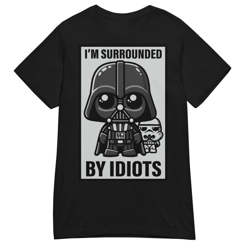 Snygg semi-fitted t-shirt med två välkända figurer och texten ’I’m surrounded by idiots’ som tryck på framsidan. Passar alla kvinnor som älskar Star Wars, men har lite för mycket idioter omkring sig. Välj mellan hela 11 olika färger.