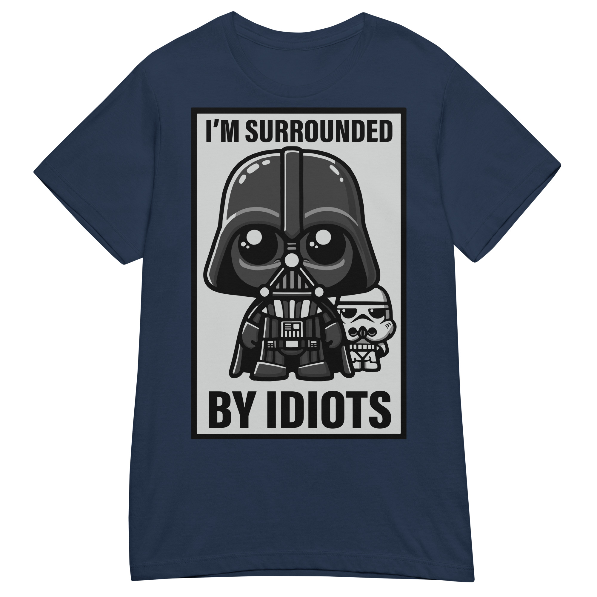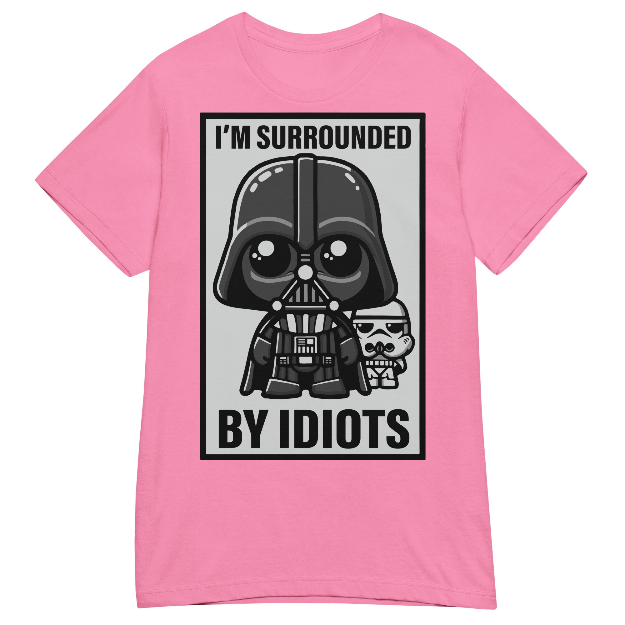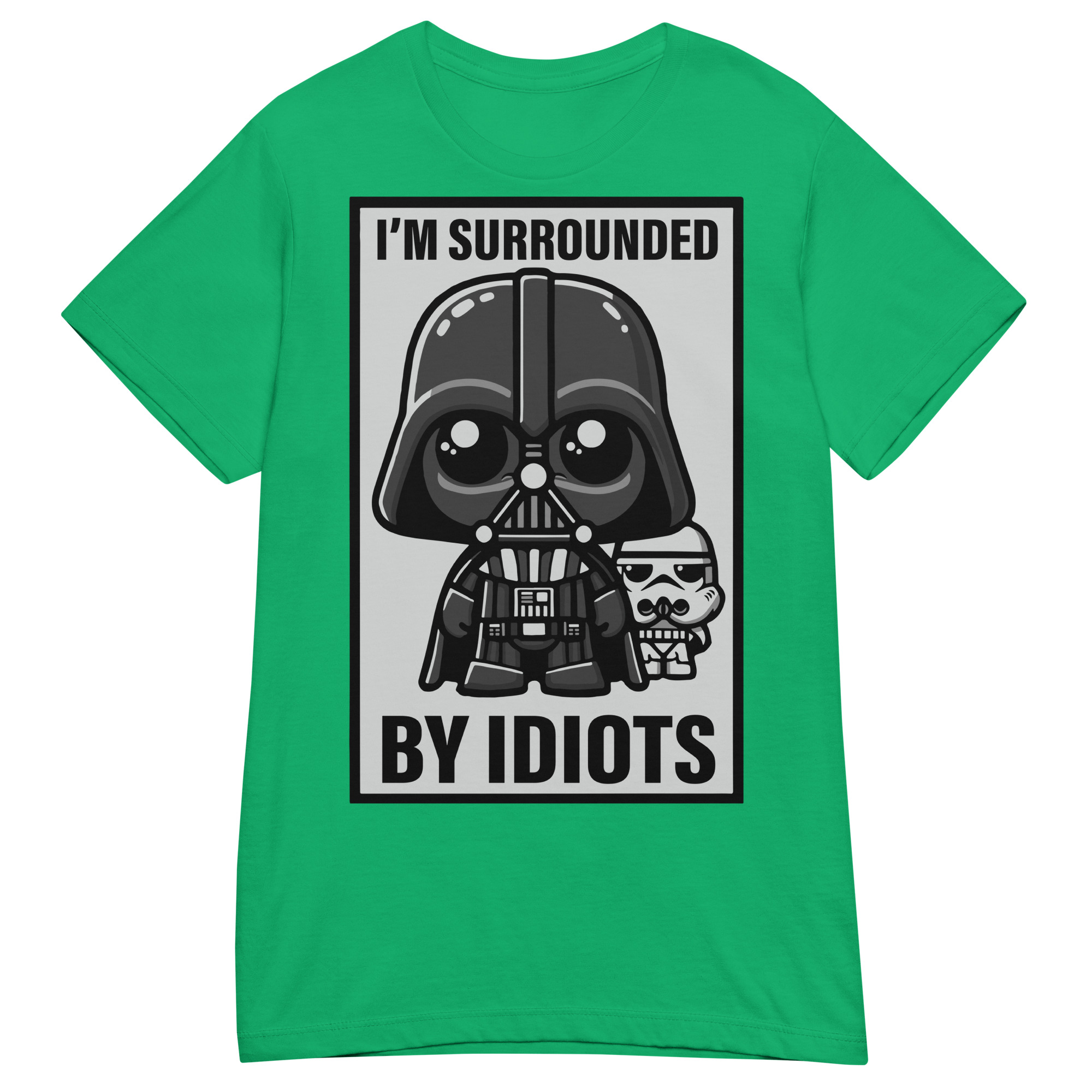 Snygg semi-fitted t-shirt med två välkända figurer och texten ’I’m surrounded by idiots’ som tryck på framsidan. Passar alla kvinnor som älskar Star Wars, men har lite för mycket idioter omkring sig. Välj mellan hela 11 olika färger.