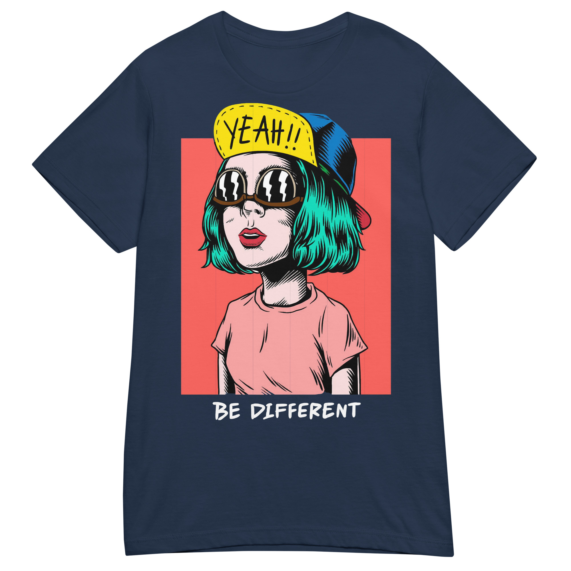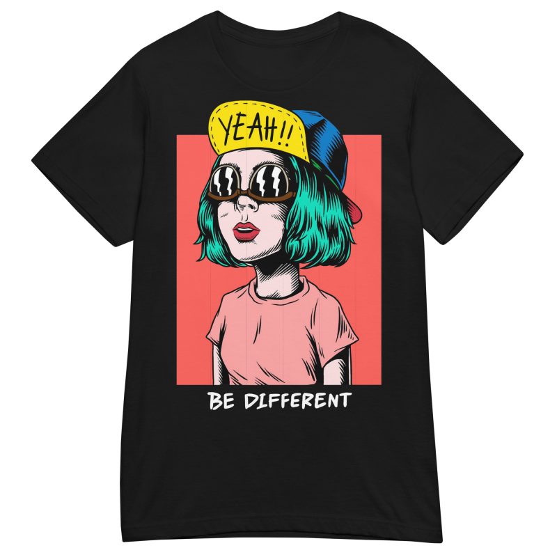 Underbar semi-fitted t-shirt med ett stort tryck på framsidan med texten ’Be different’. Passar alla annorlunda kvinnor och finns i sju olika färger.