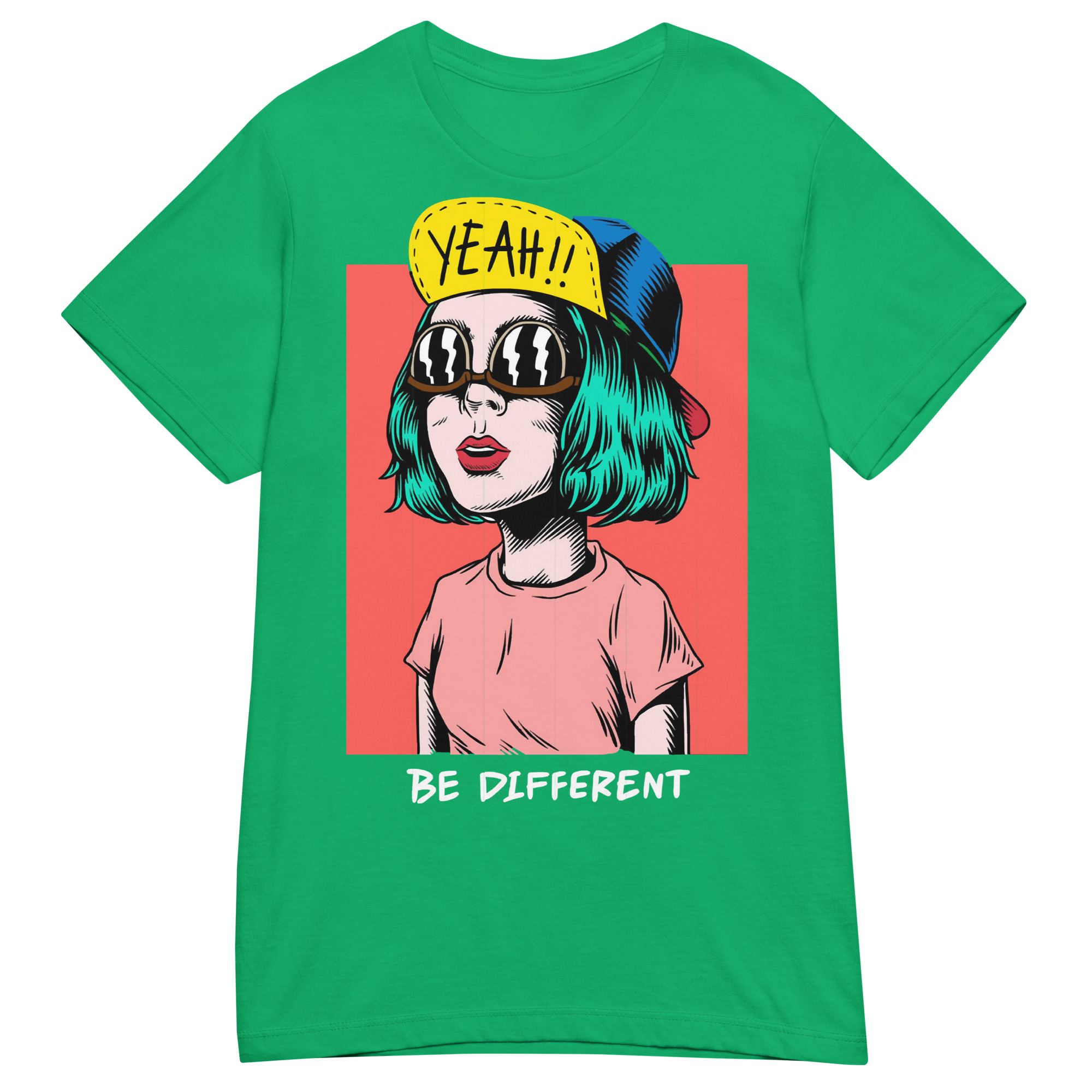 Semi-fitted t-shirt dekorerad med ett stort tryck med texten ’Be different’ som dekoration på framsidan. Passar strålande till alla annorlunda kvinnor och finns i sju olika färger.