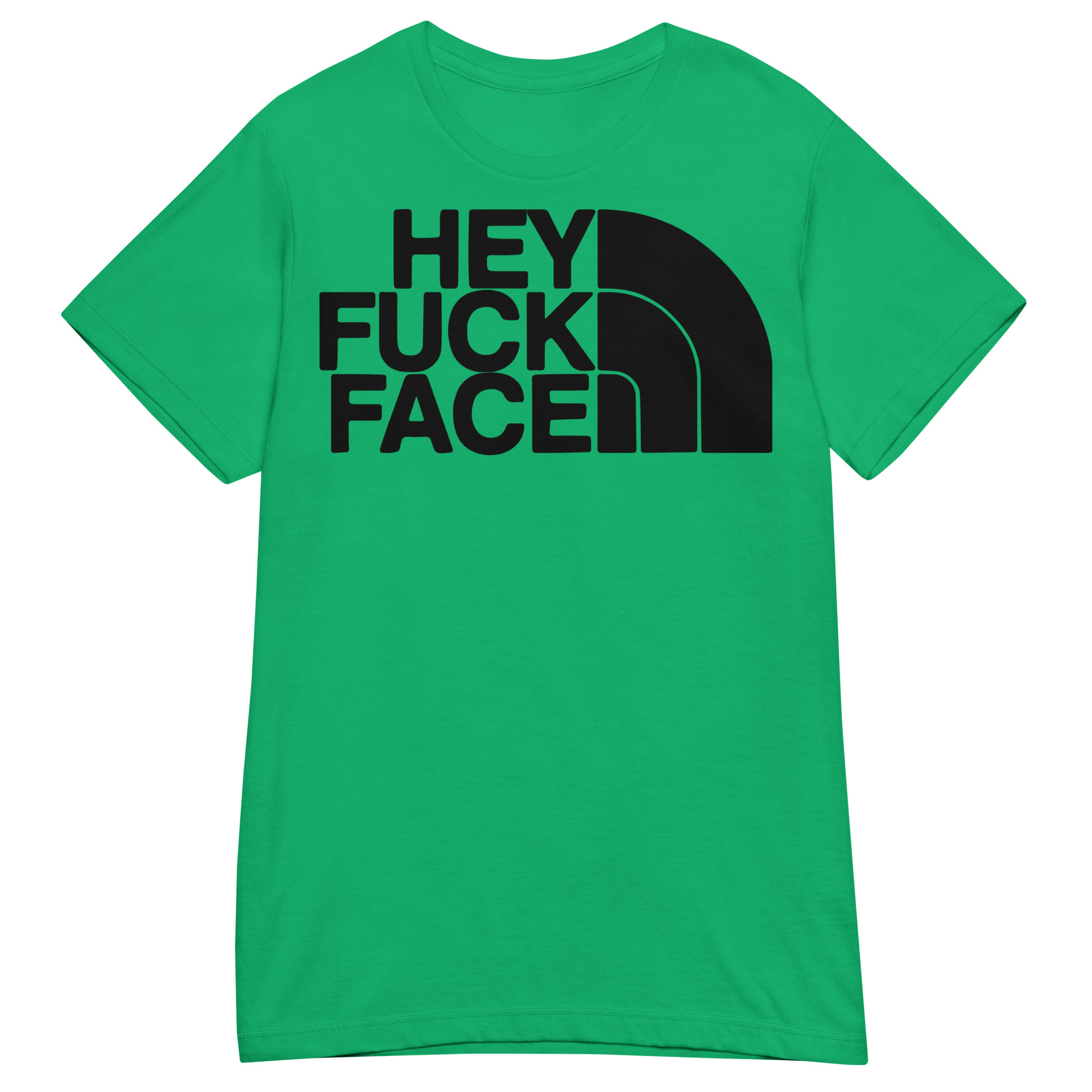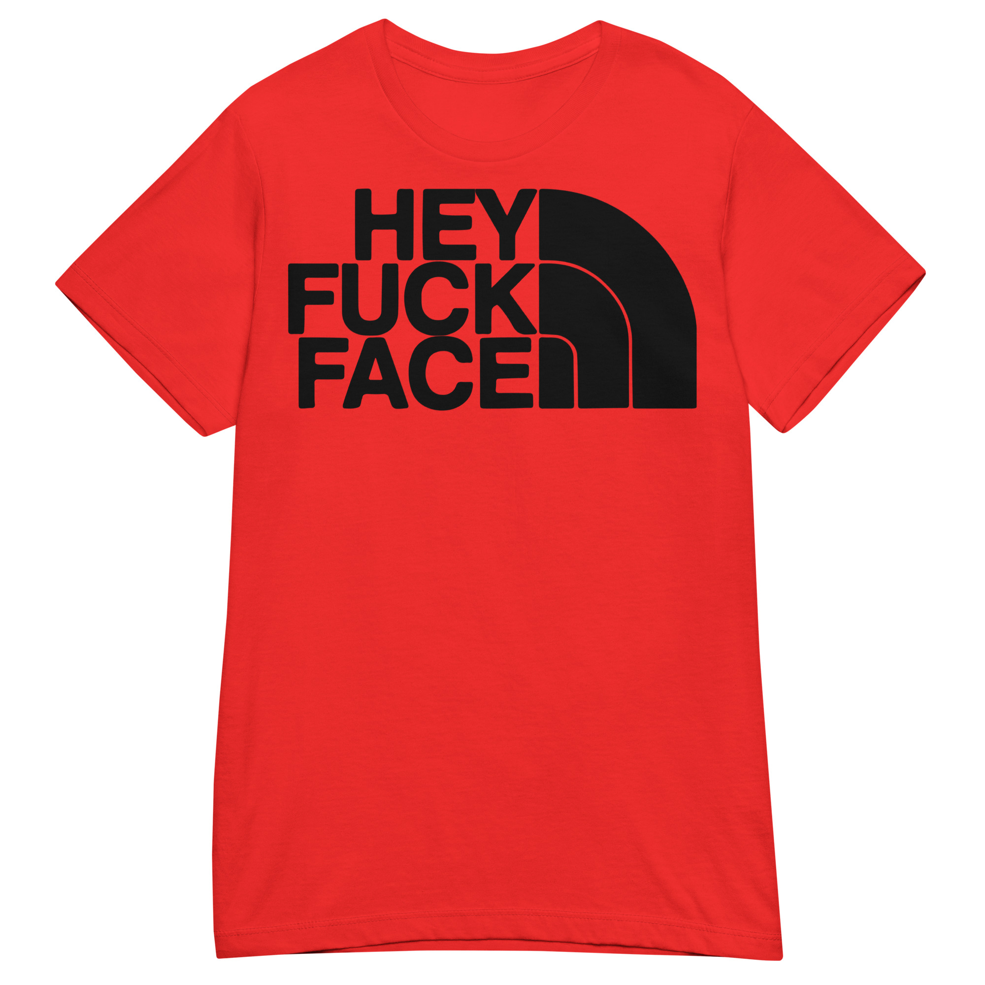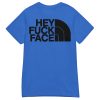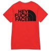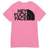 Semi-fitted t-shirt med en välkänd omgjord logo med texten ’Hey fuck face’ som tryck på framsidan. Välj mellan nio olika färger som passar perfekt till kvinnor som älskar attityd..