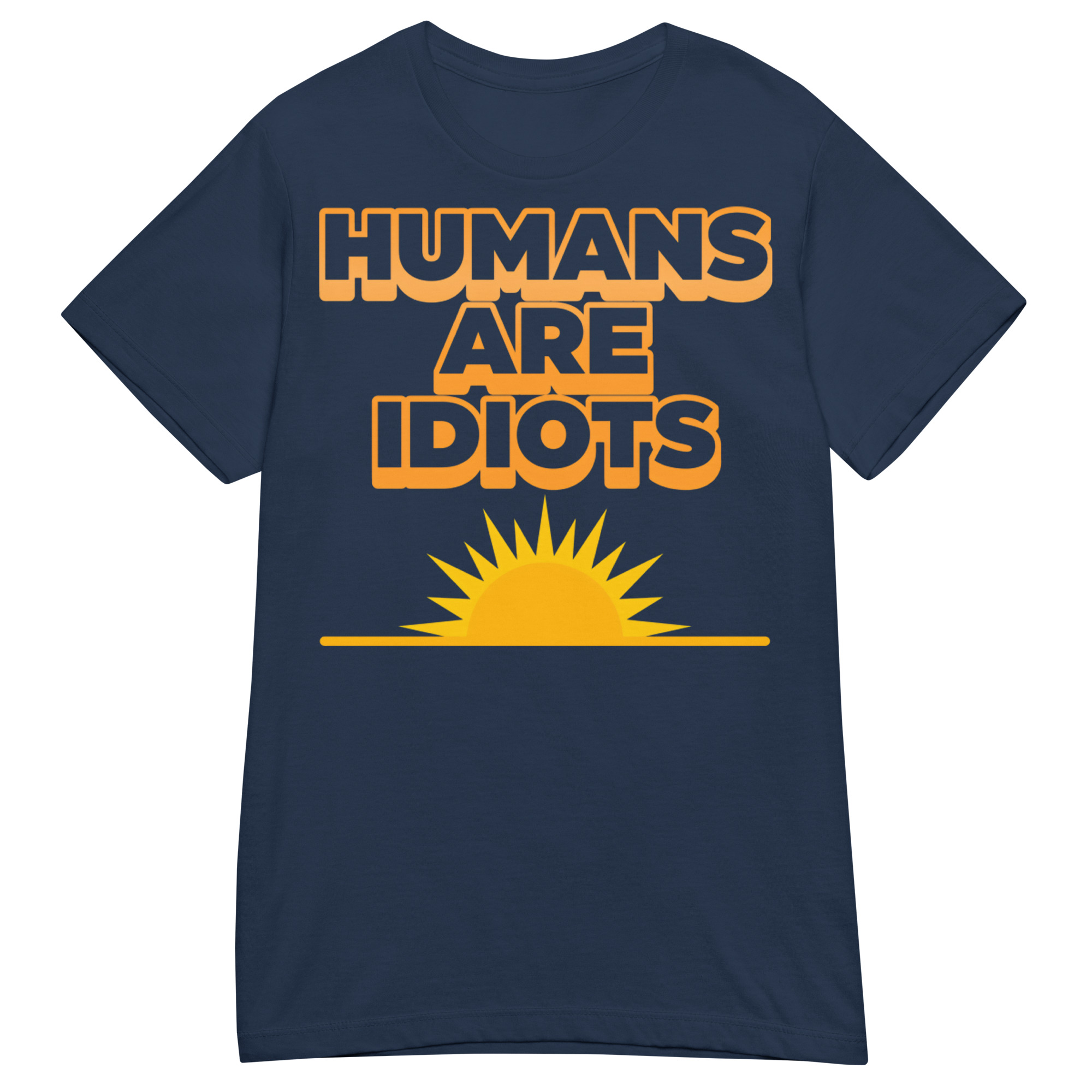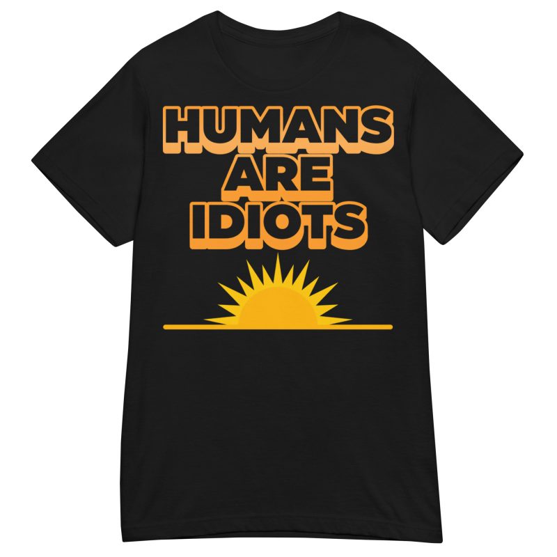 Snygg semi-fitted t-shirt med en sol och texten ’Humans are idiots’ som tryck på framsidan. Finns i fyra olika färger och passar alla kvinnor som tycker att andra människor är idioter.
