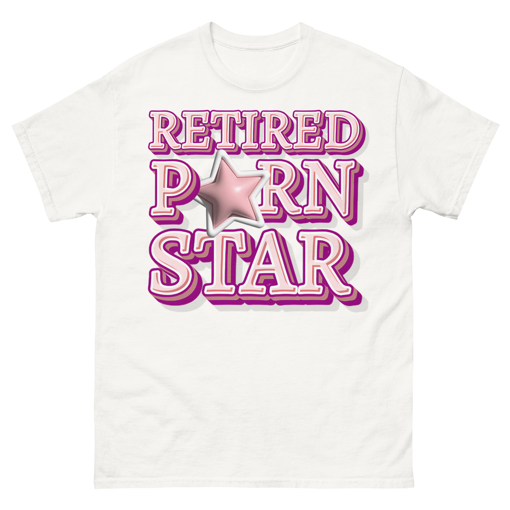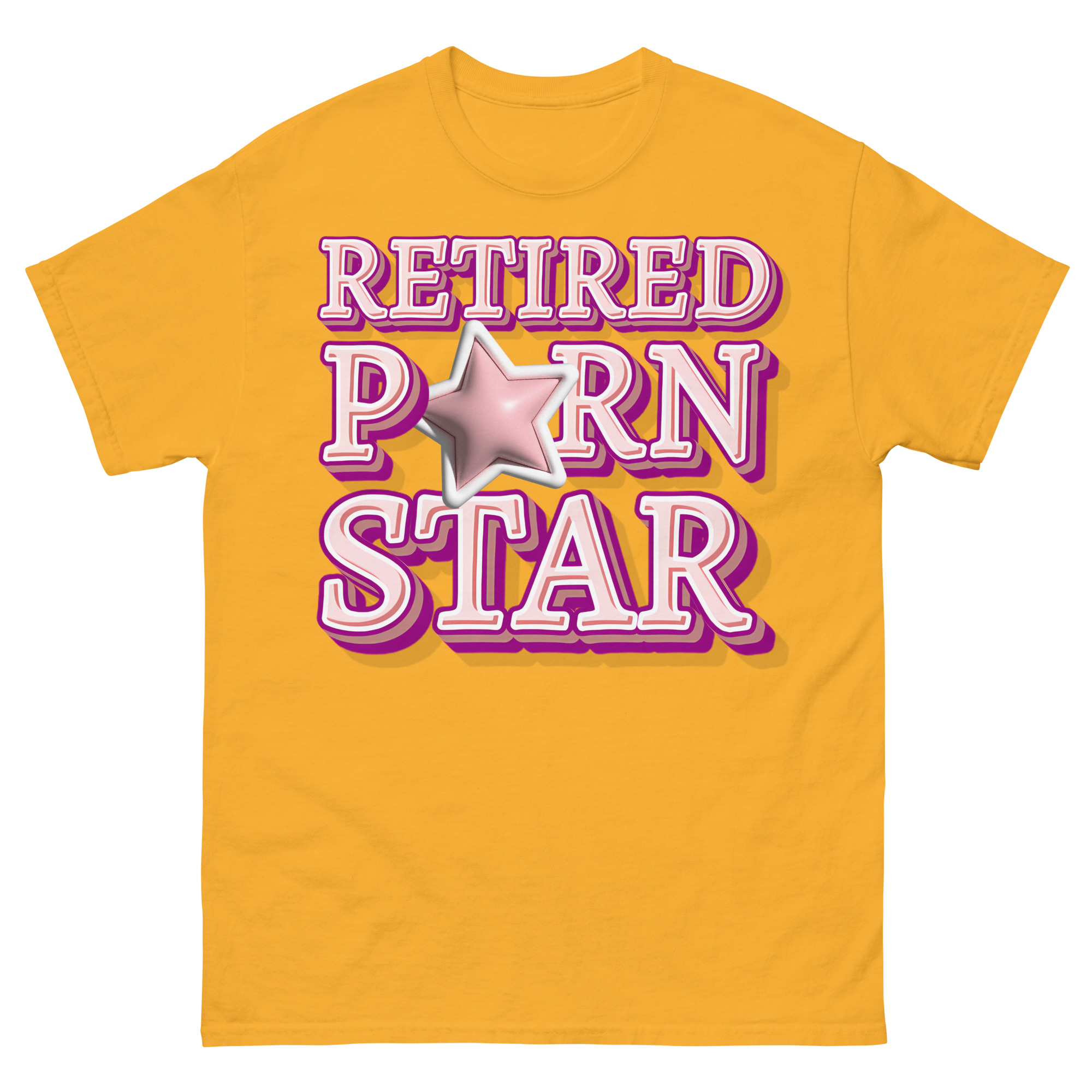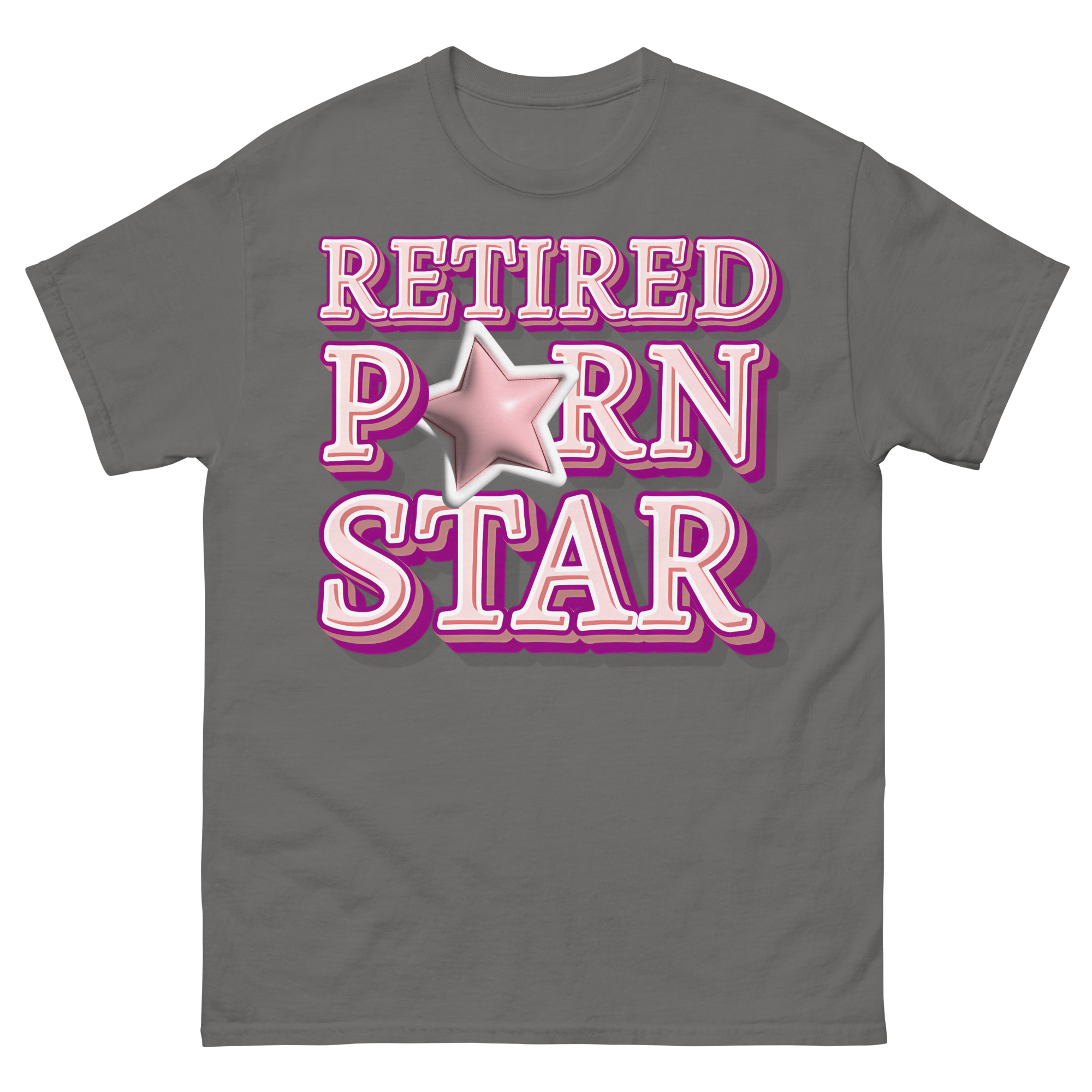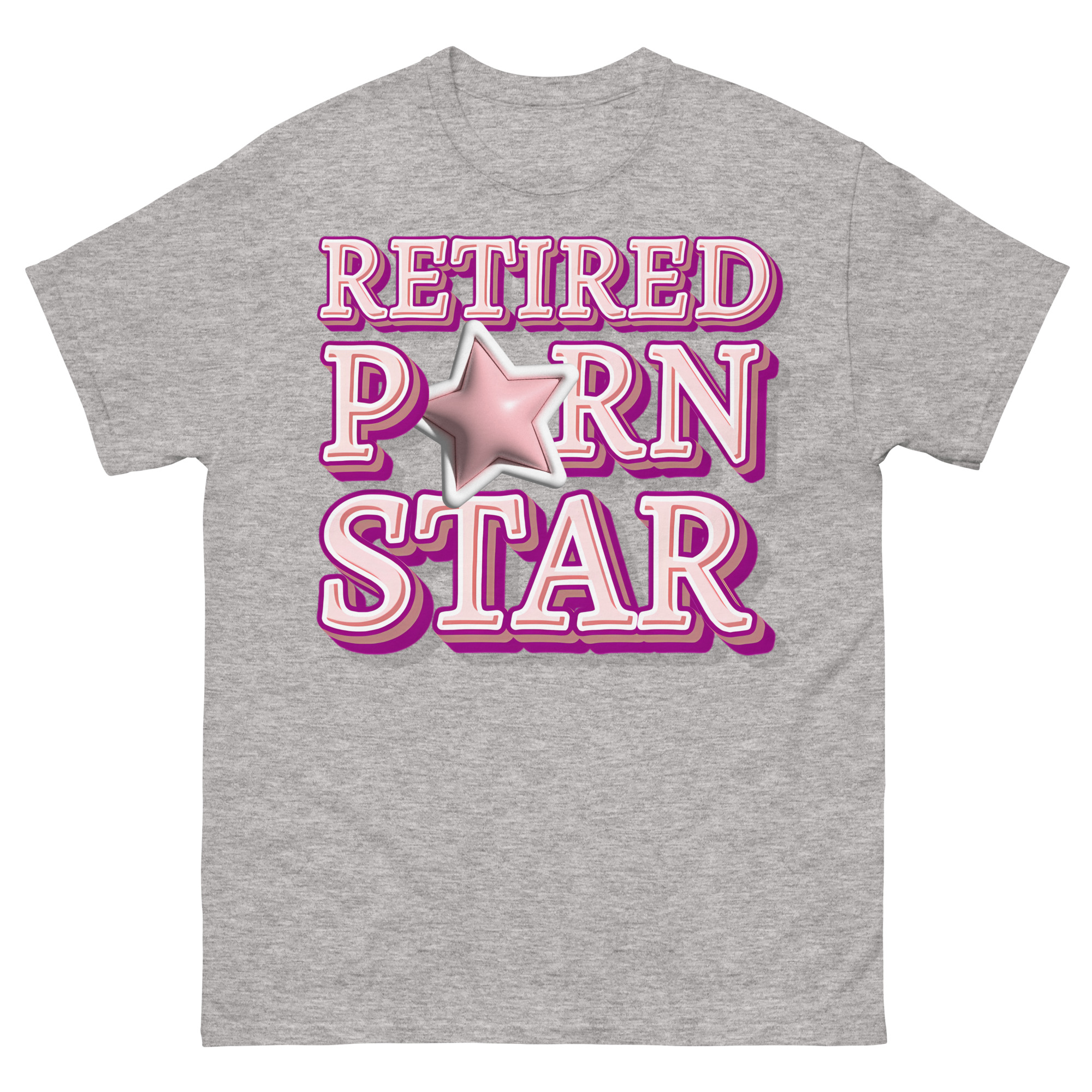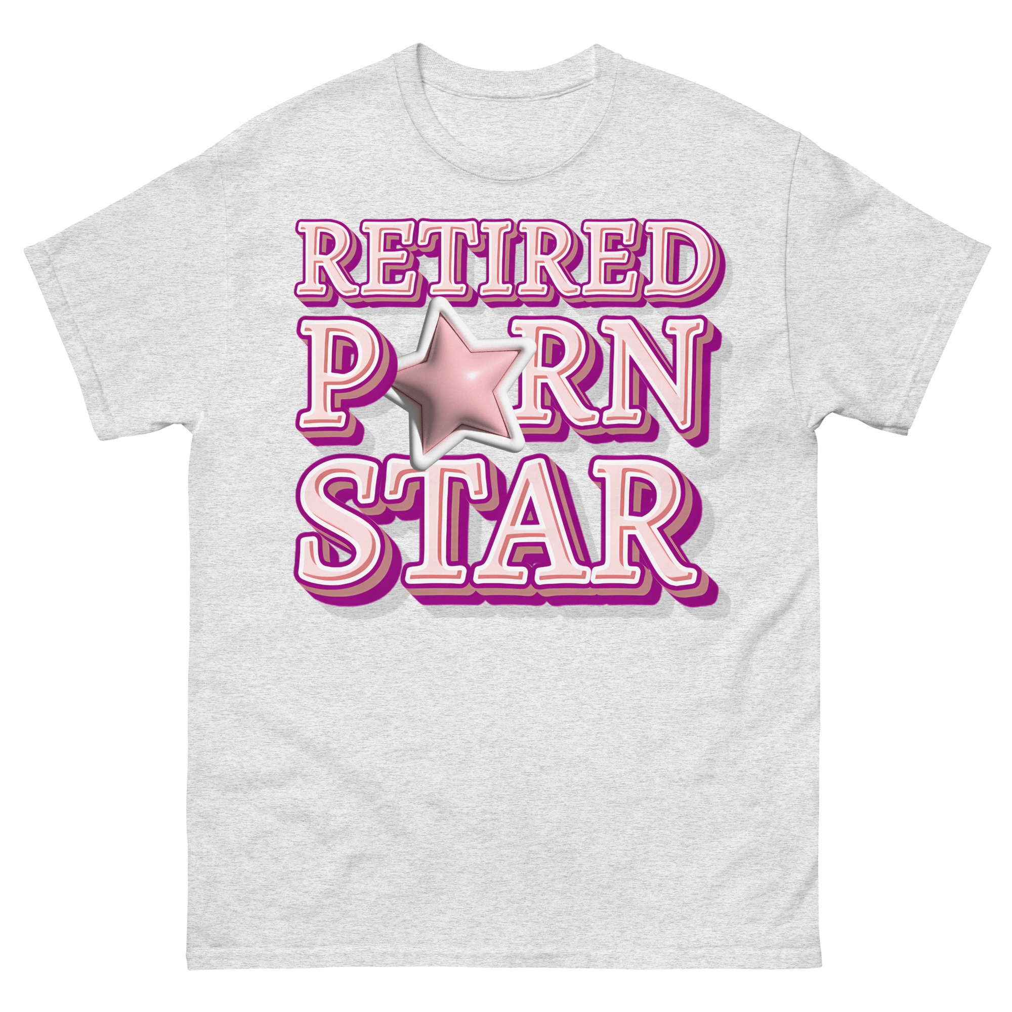 Snygg t-shirt med budskapet ’Retired porn star’ som tryck på framsidan. Tröjan passar alla män och kvinnor som lämnat porrbranschen. Du kan välja mellan tolv olika färger.