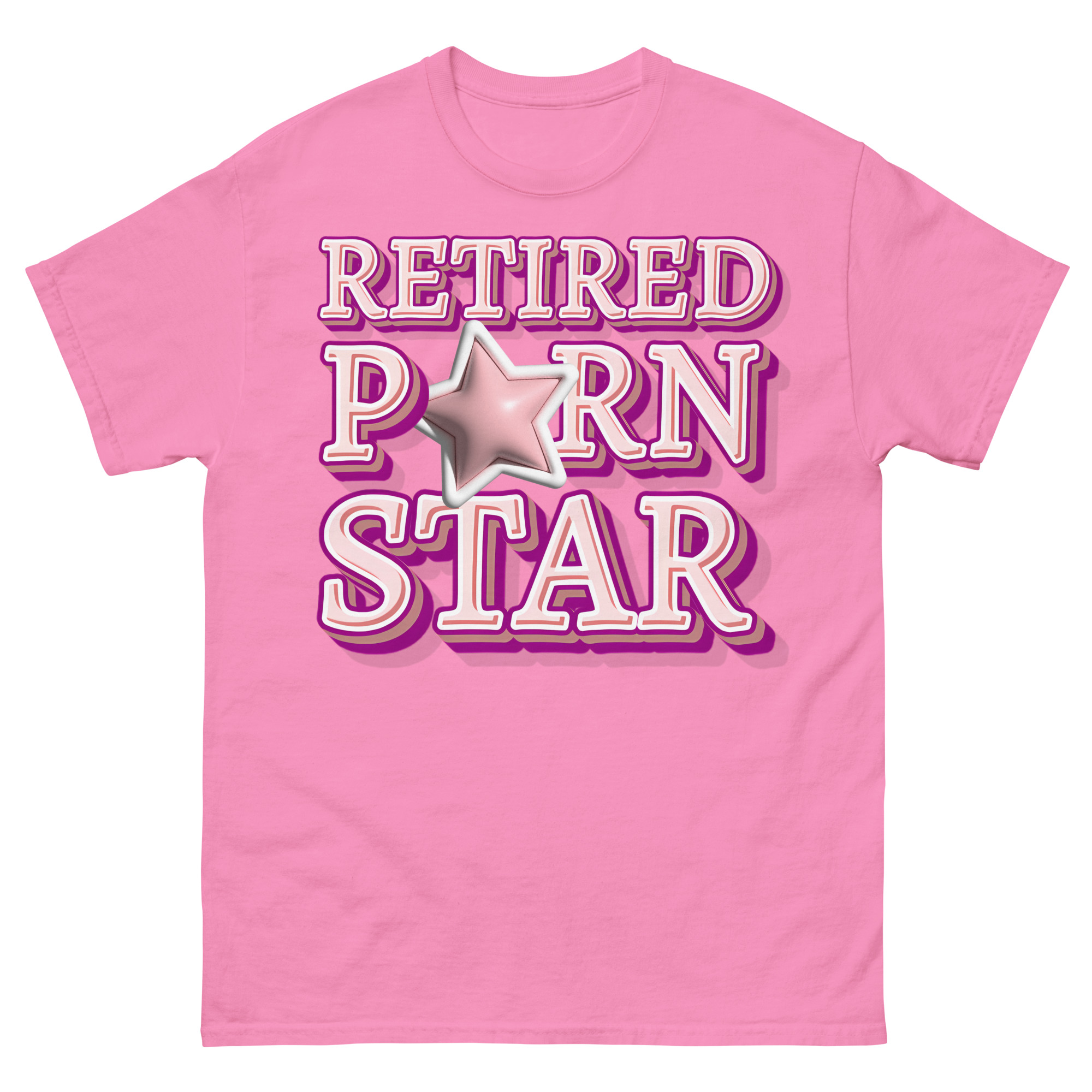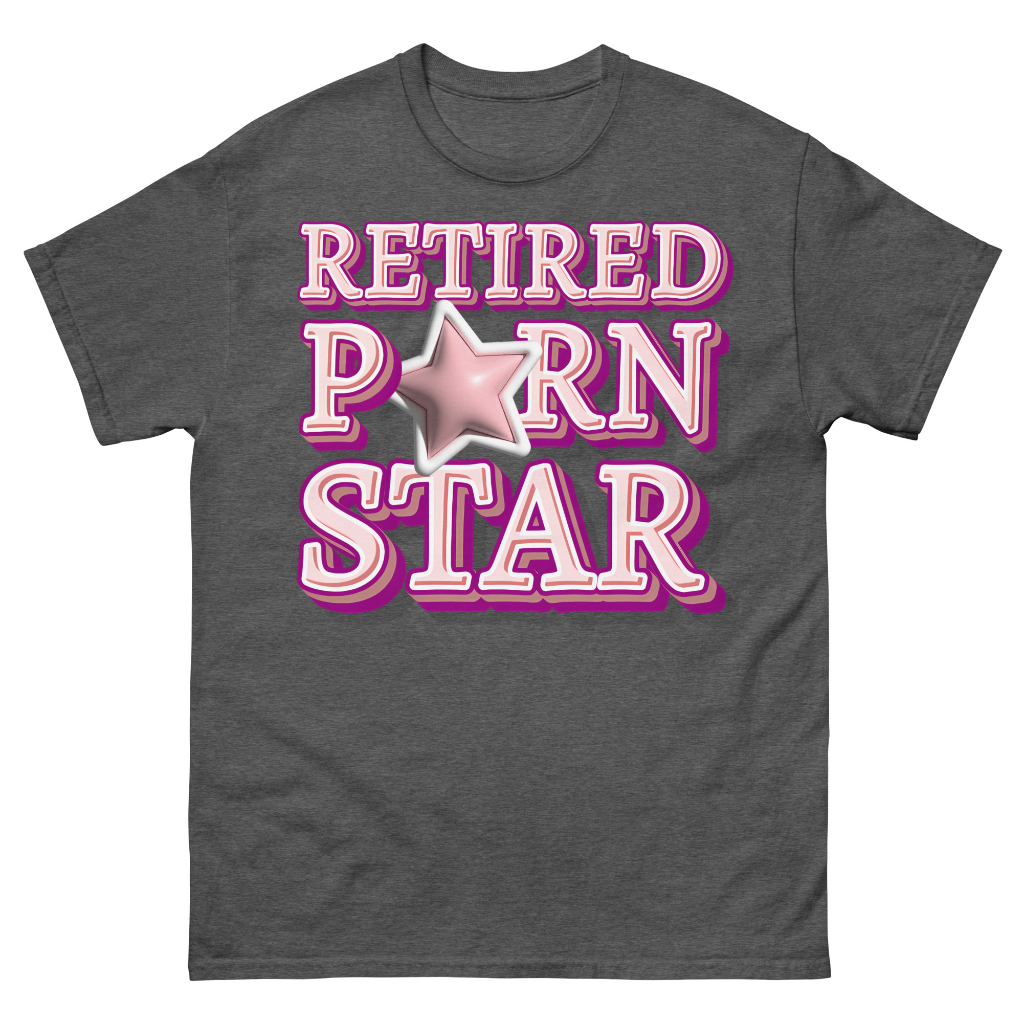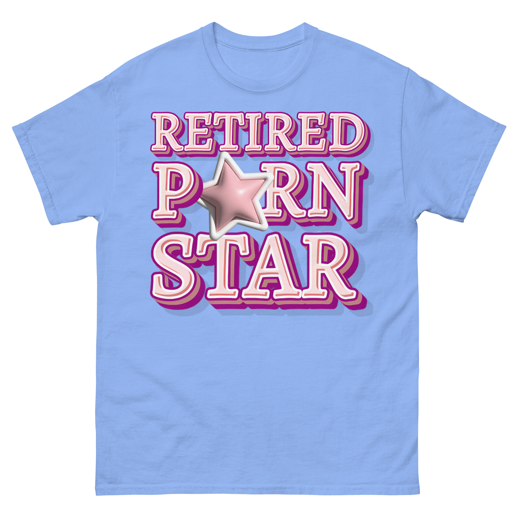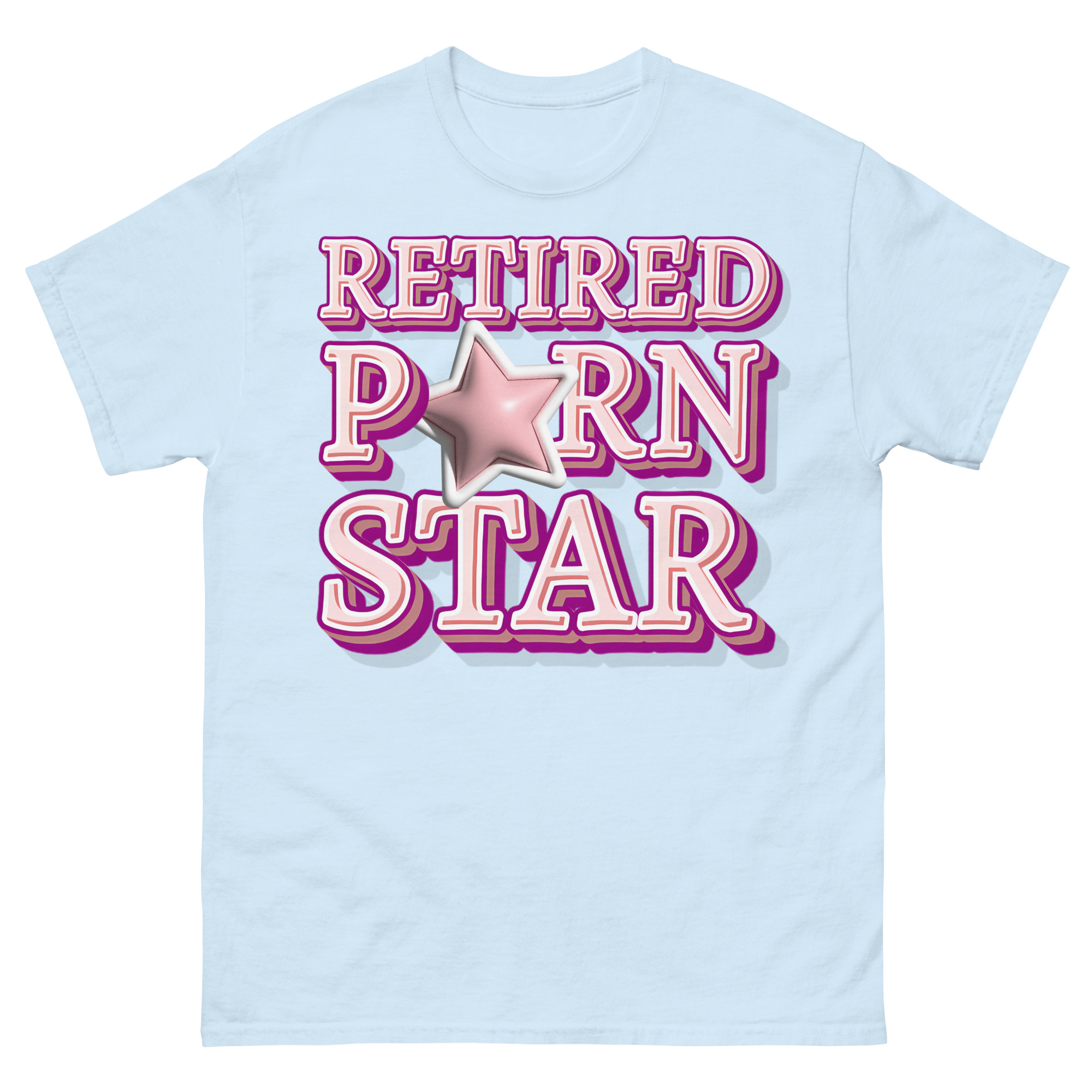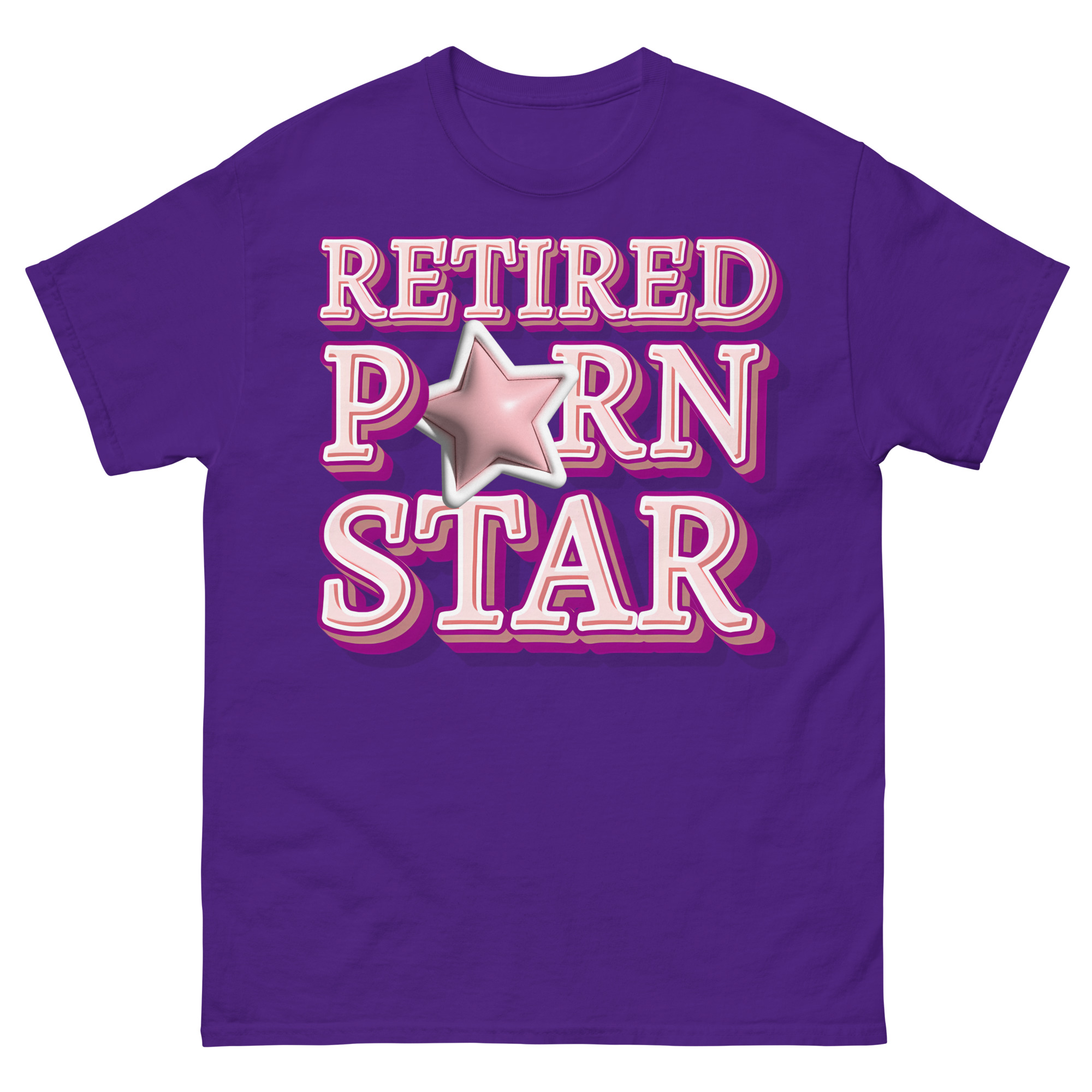 Snygg t-shirt med budskapet ’Retired porn star’ som tryck på framsidan. Tröjan passar alla män och kvinnor som lämnat porrbranschen. Du kan välja mellan tolv olika färger.
