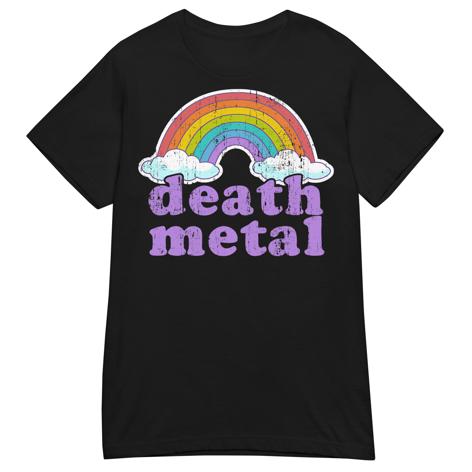 Semi-fitted t-shirt dekorerad med ett retroinspirerat tryck med en regnbåge och texten ’Death metal’ som dekoration på framsidan. Tröjan passar alla kvinnor som älskar dödsmetall. Välj mellan fyra olika färger.