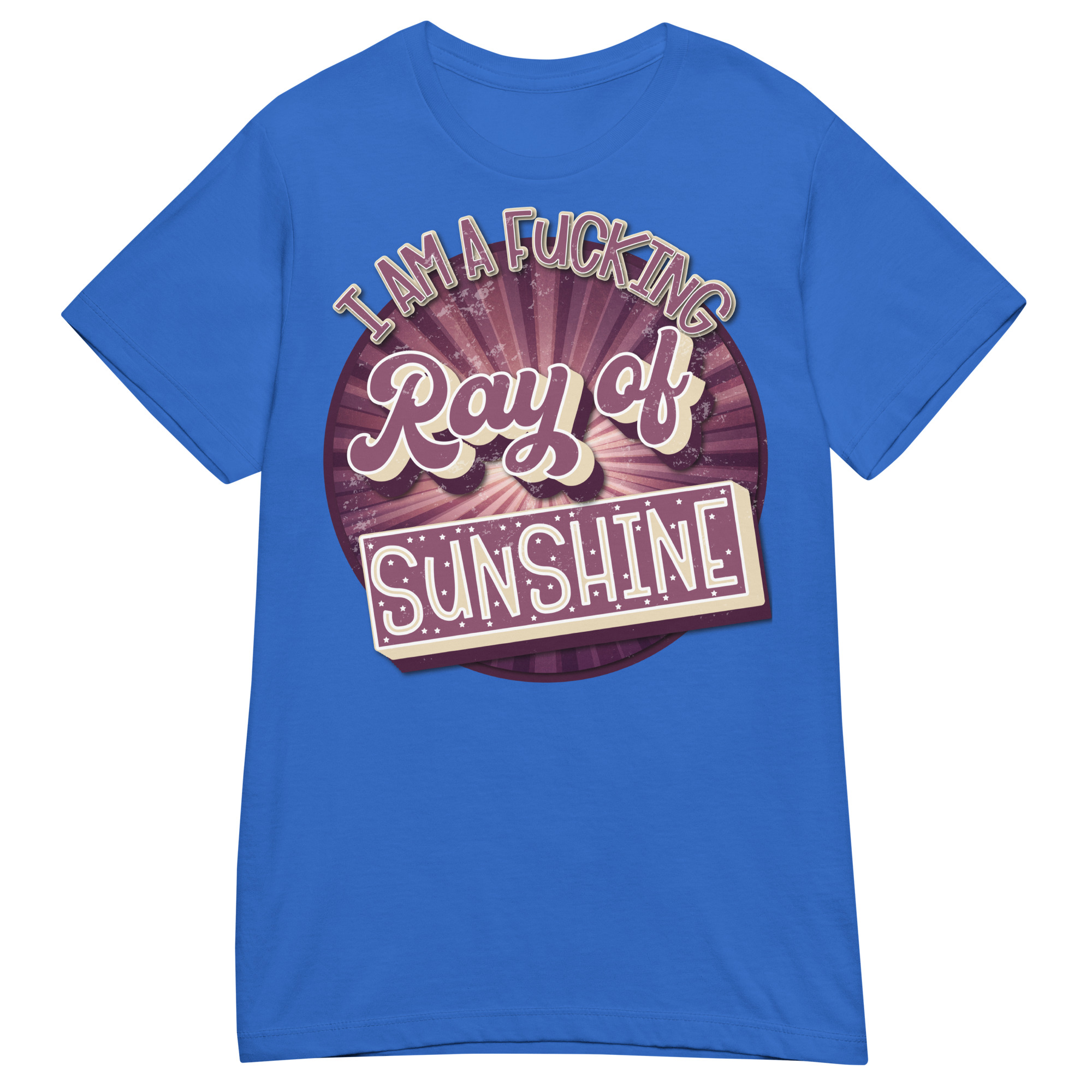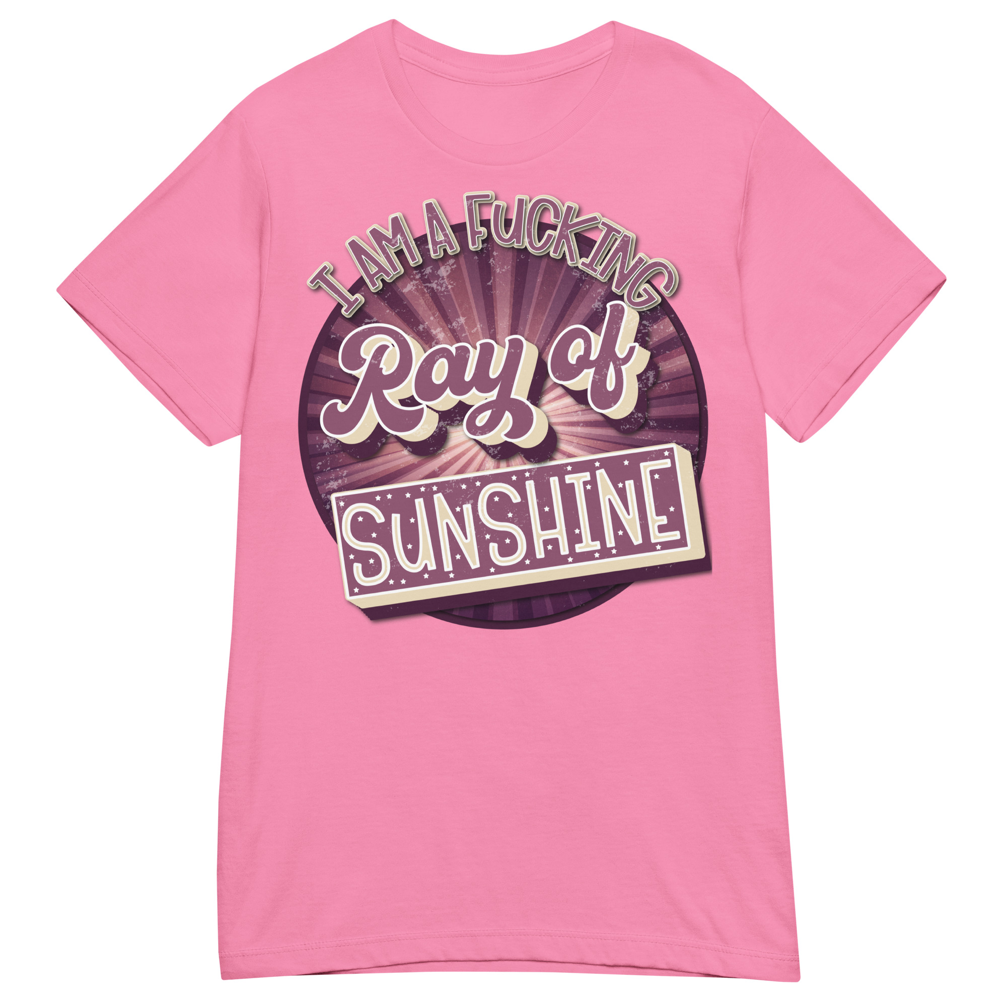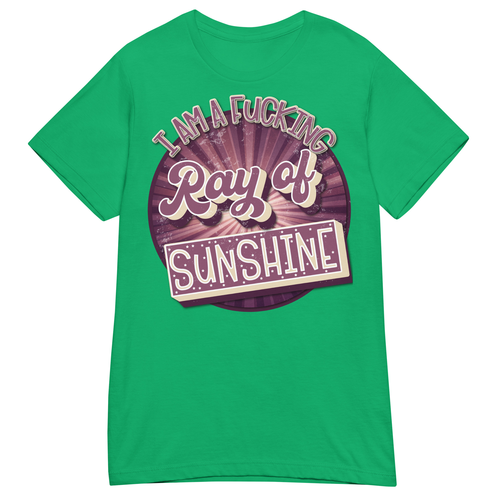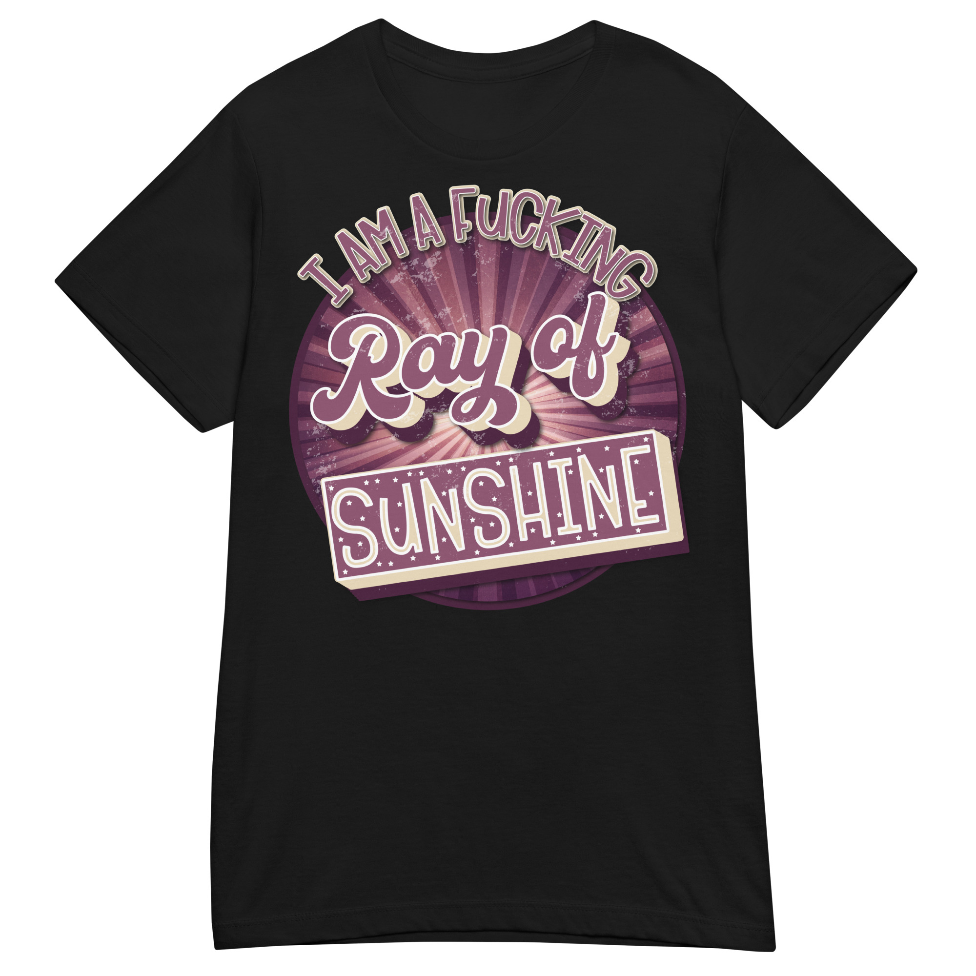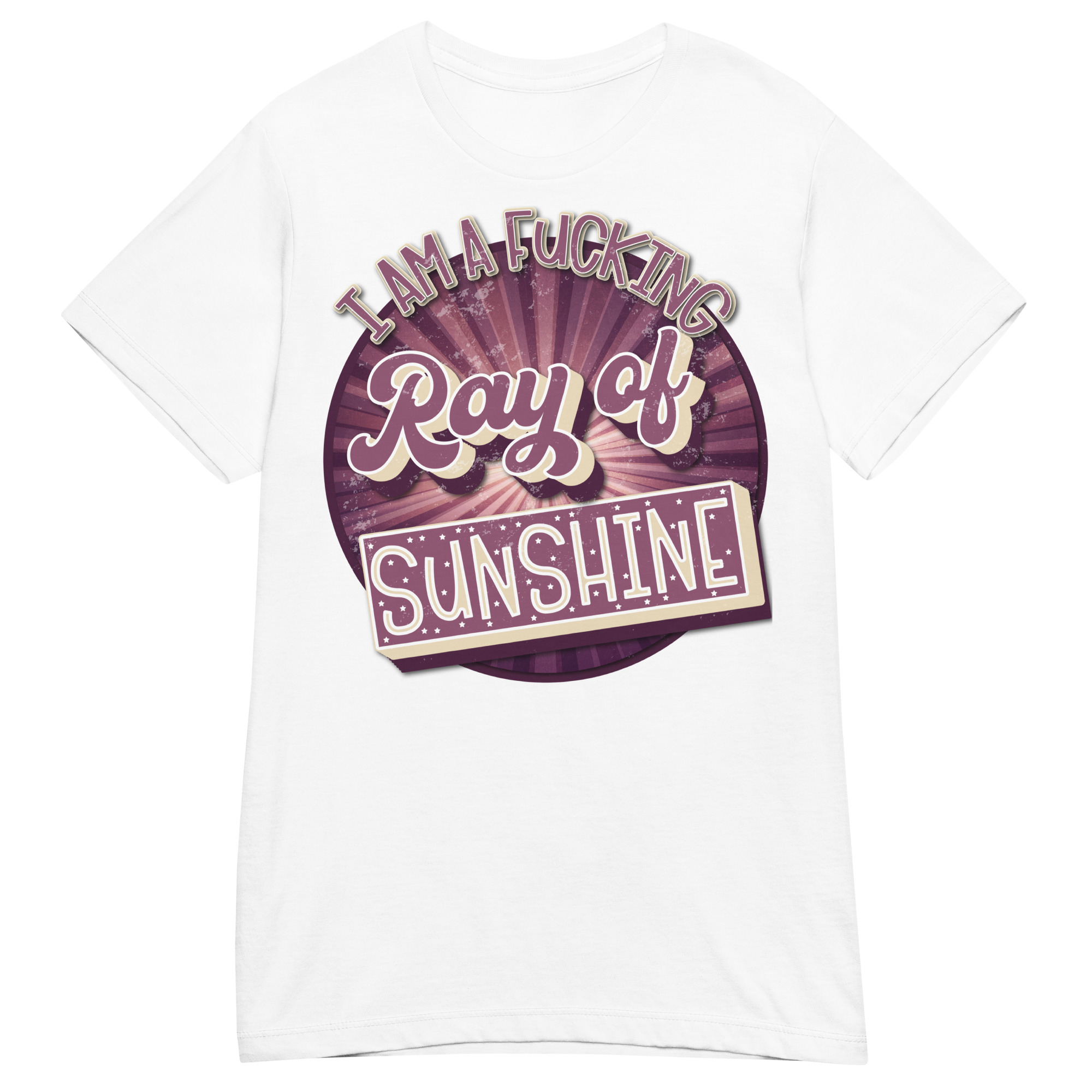Semi-fitted t-shirt dekorerad med ett stort retroinspirerat tryck med texten ’I am a fucking ray of sunshine’ på framsidan. Passar perfekt till kvinnor – välj mellan hela elva olika färger.