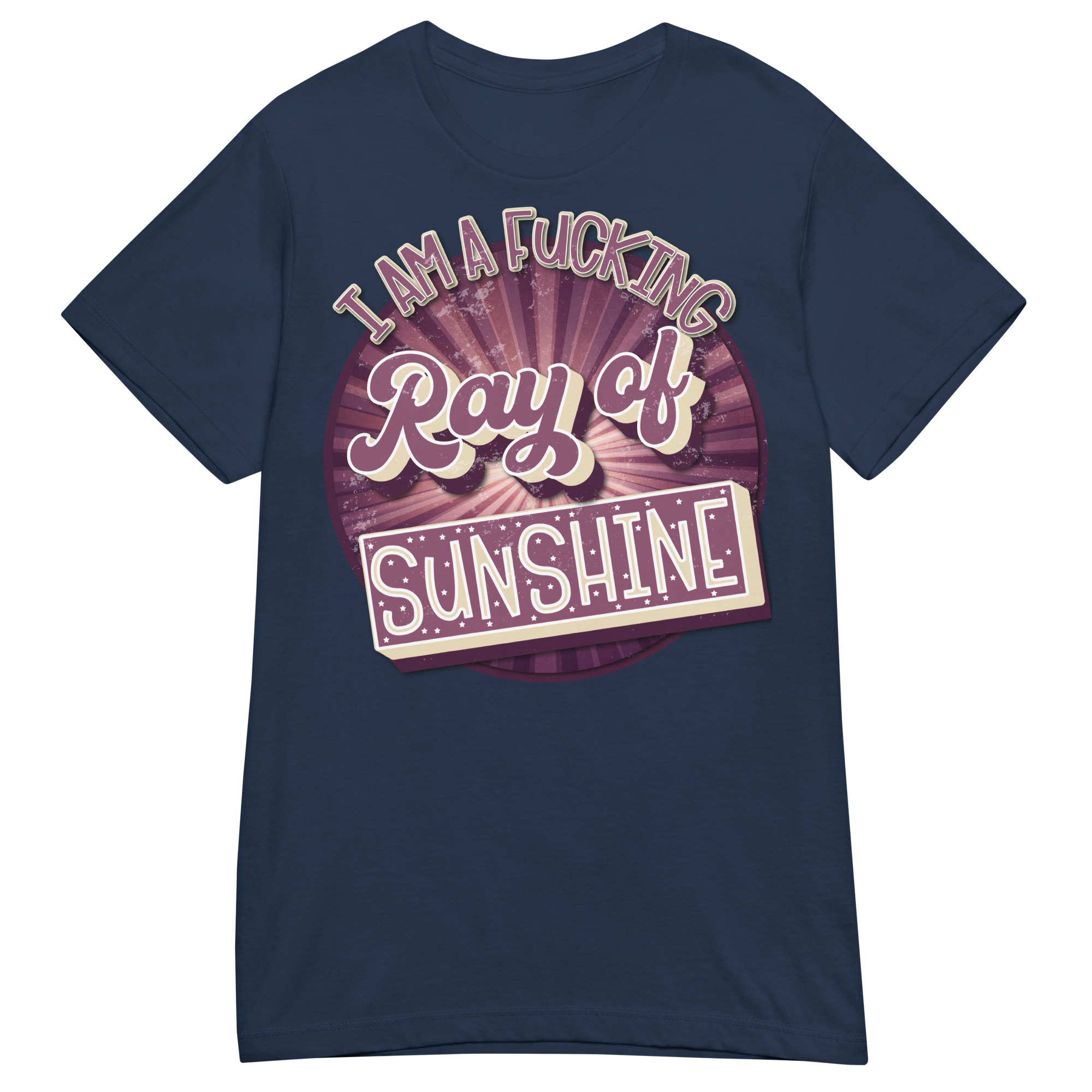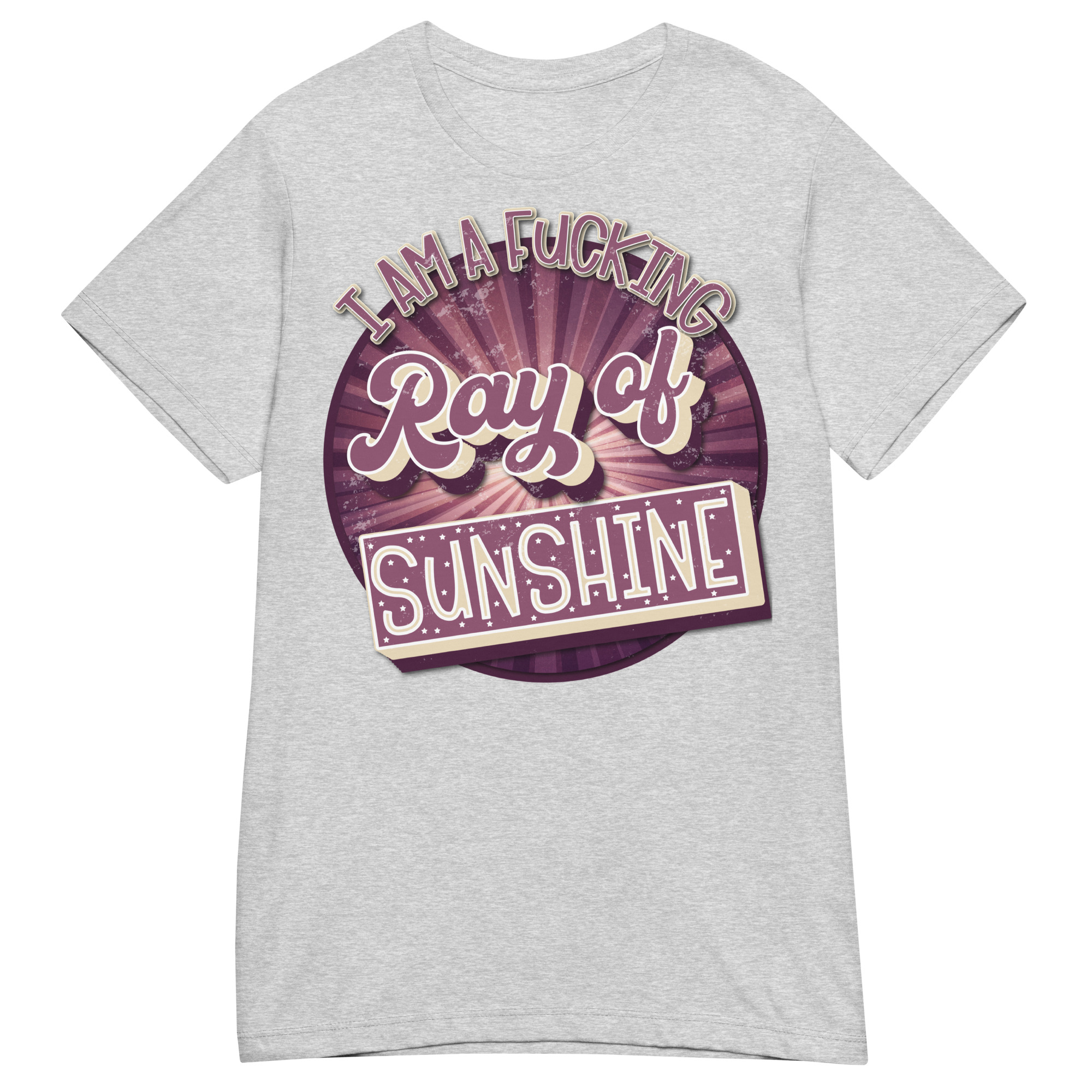 Semi-fitted t-shirt dekorerad med ett stort retroinspirerat tryck med texten ’I am a fucking ray of sunshine’ på framsidan. Passar alla kvinnor som älskar attityd – välj mellan hela elva olika färger.