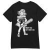Semi-fitted t-shirt dekorerad med en flicka med en motorsåg och texten ’Rör du så dör du’ som tryck på framsidan. Tröjan passar perfekt till kvinnor och du kan välja mellan fyra olika färger.