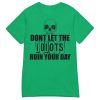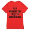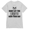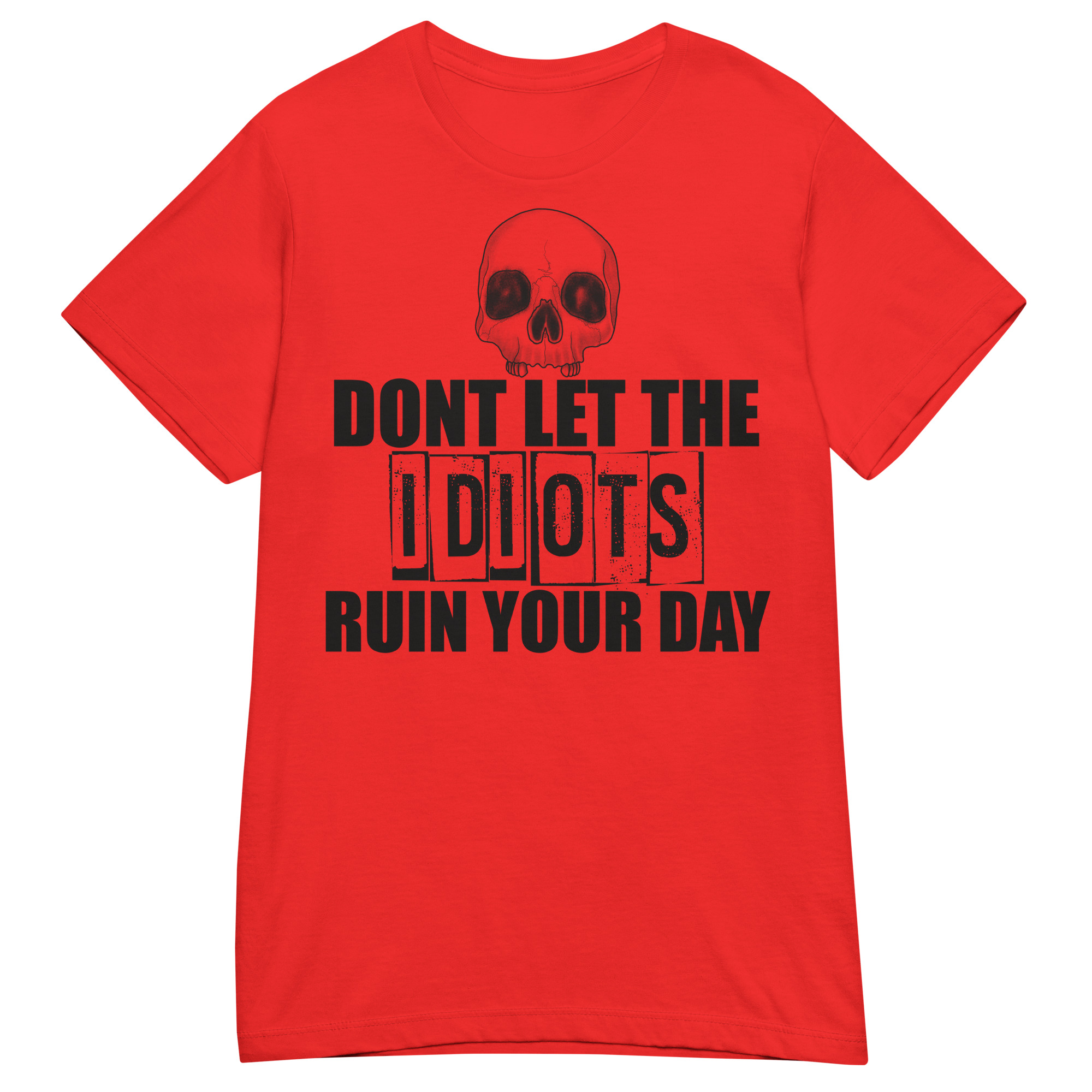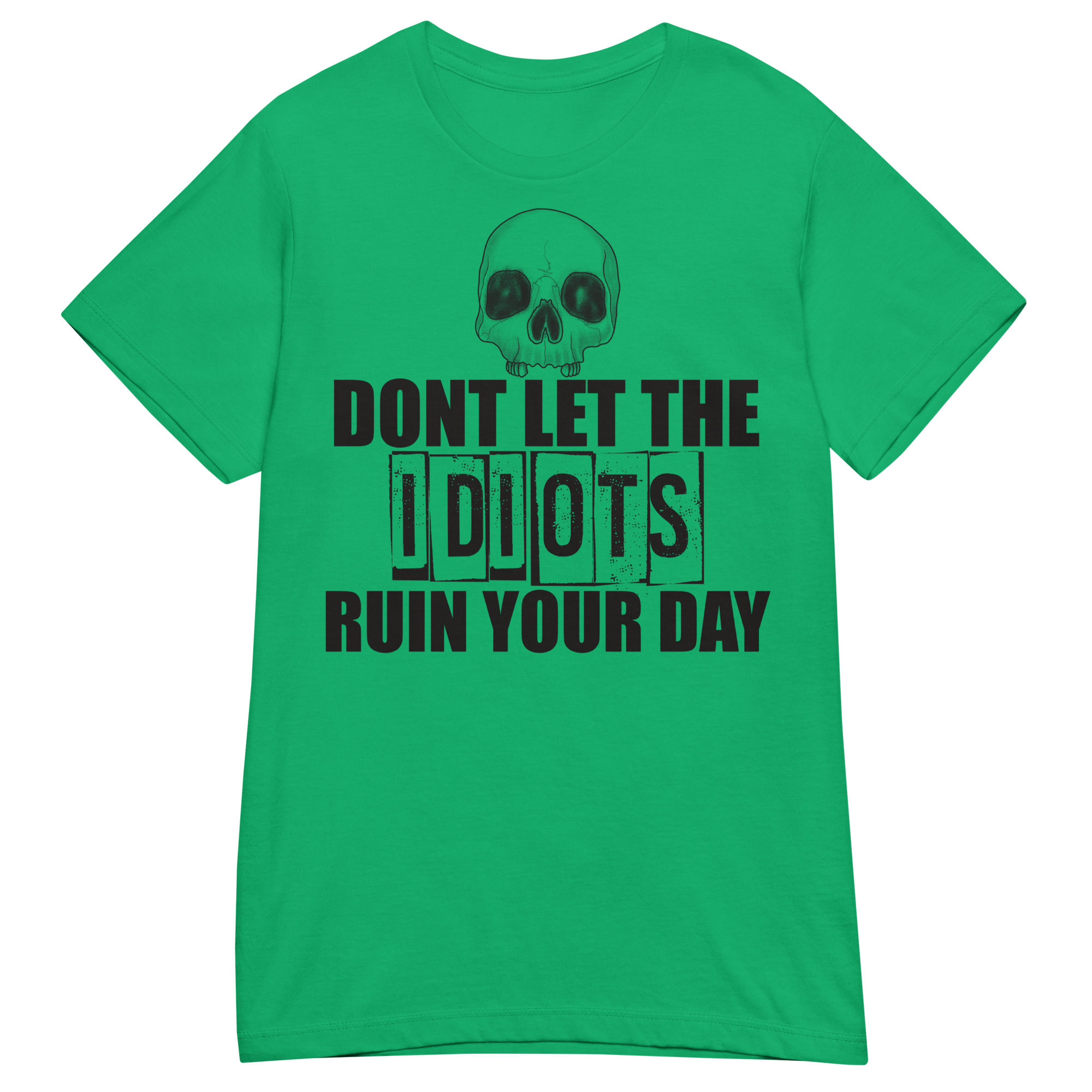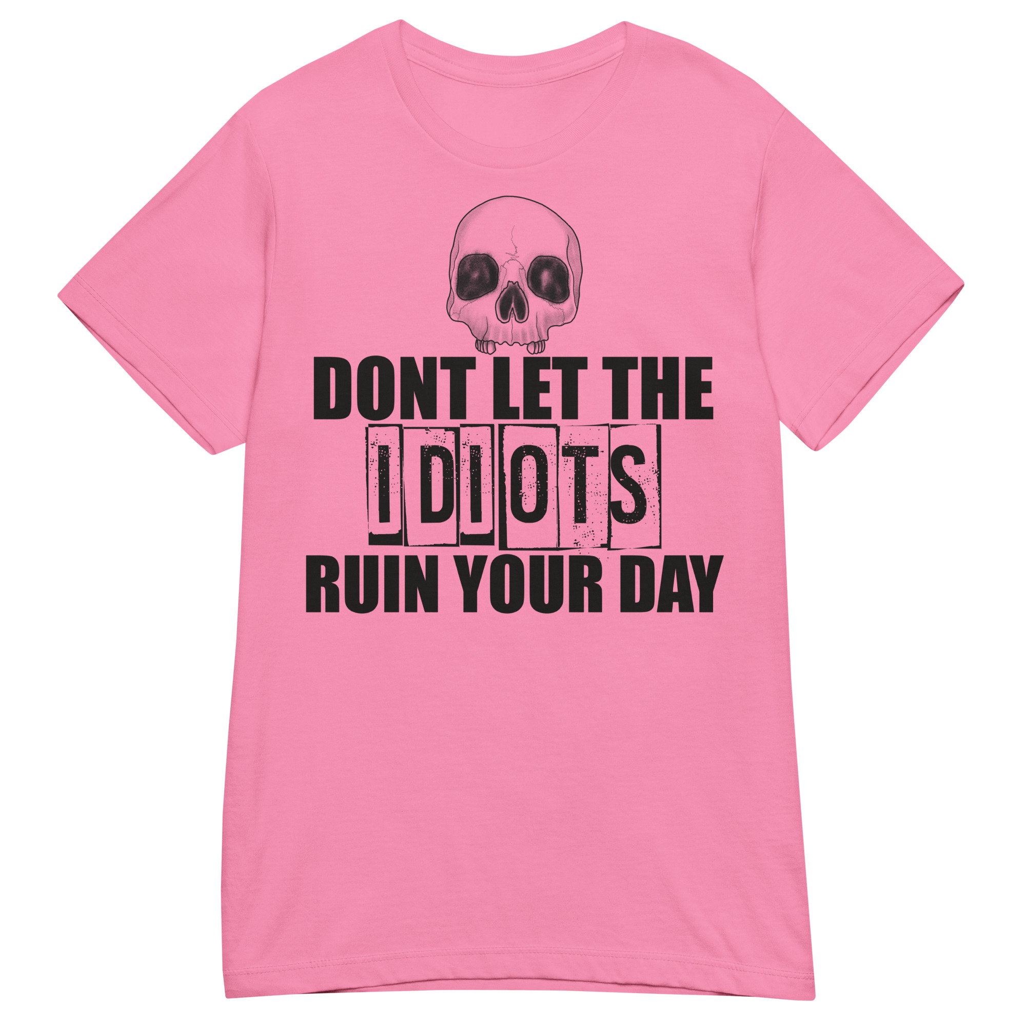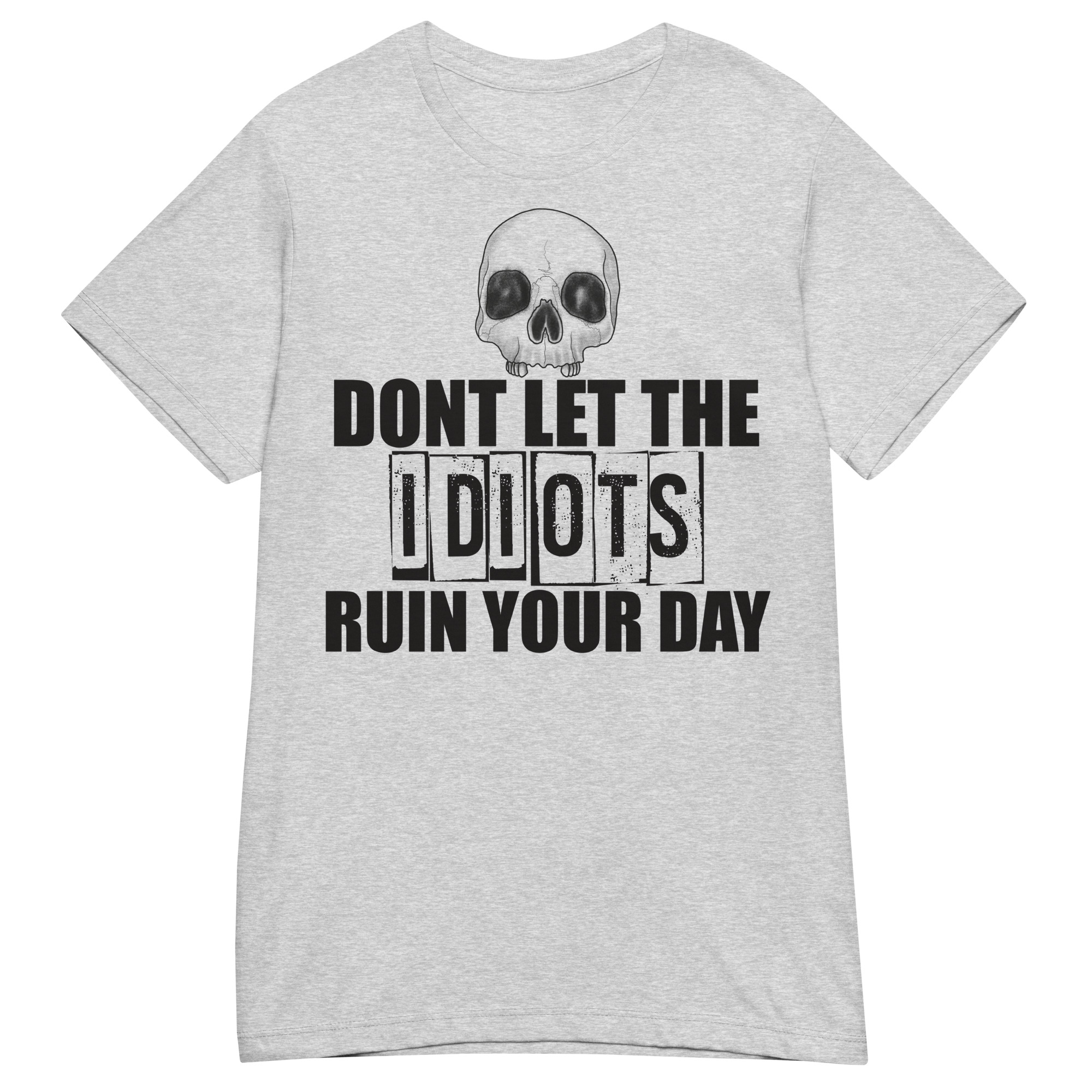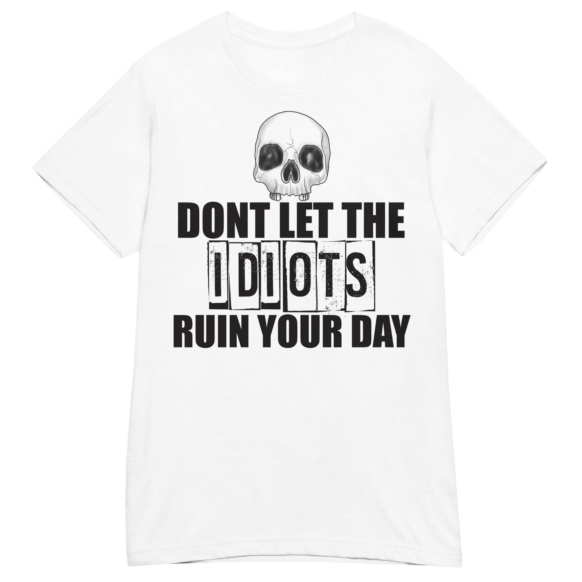 Låt dig inte påverkas av idioter! Skön semi-fitted t-shirt med en dödskallar och texten ’Don’t let the idiots ruin your day’ som tryck på framsidan. Välj mellan åtta olika färger som passar perfekt till alla kvinnor som tröttnat på idioter.