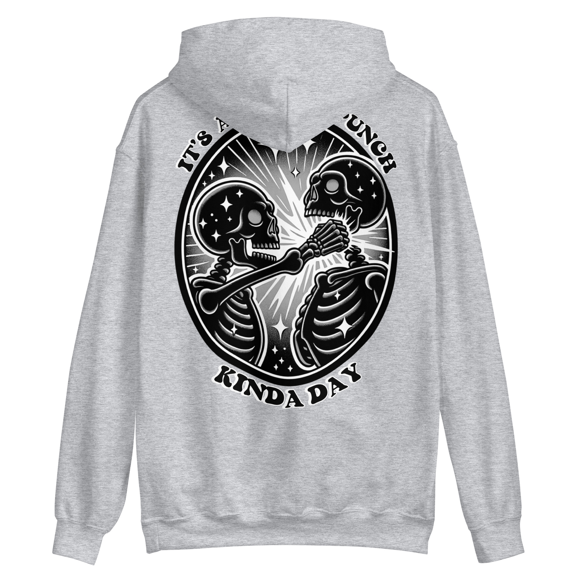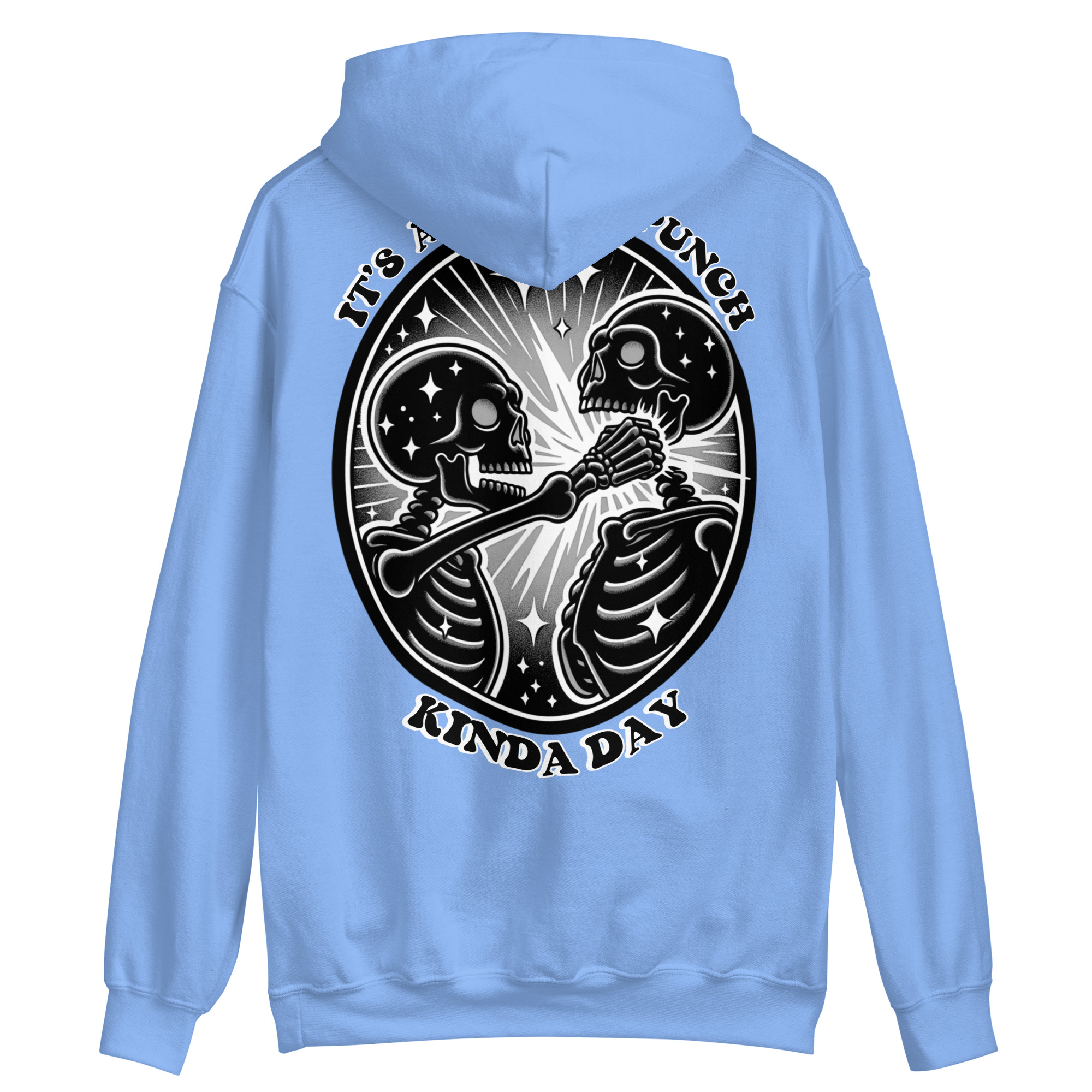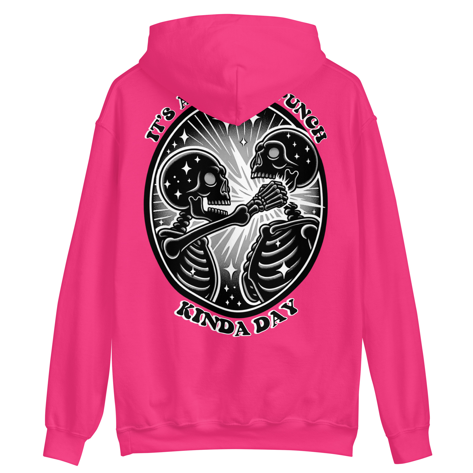 Hoodie dekorerad med två skelett som slåss och texten ’It’s a throat punch kinda day’ som motiv på baksidan. Hoodien finns i 16 olika färger som passar perfekt till både män och kvinnor som älskar attityd.