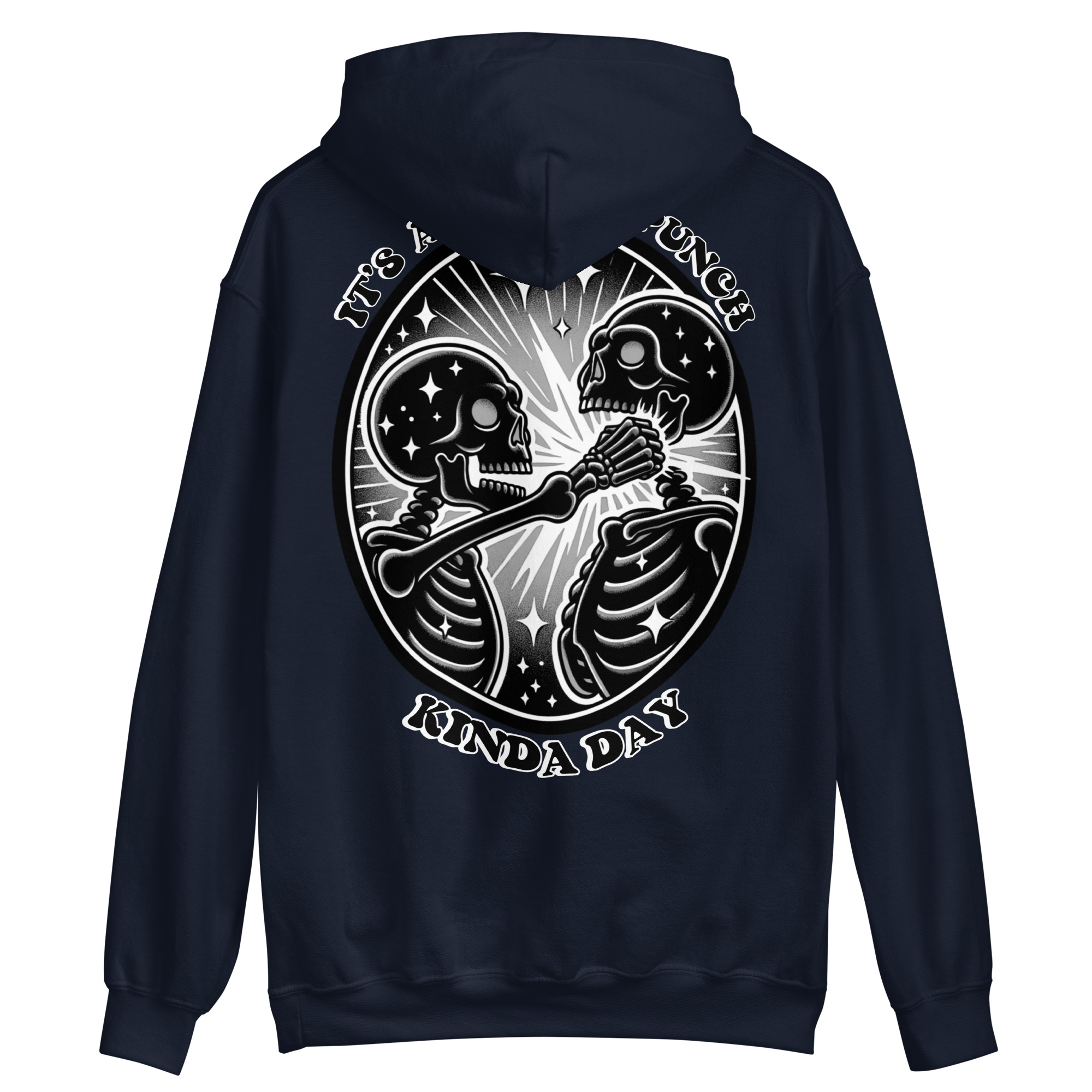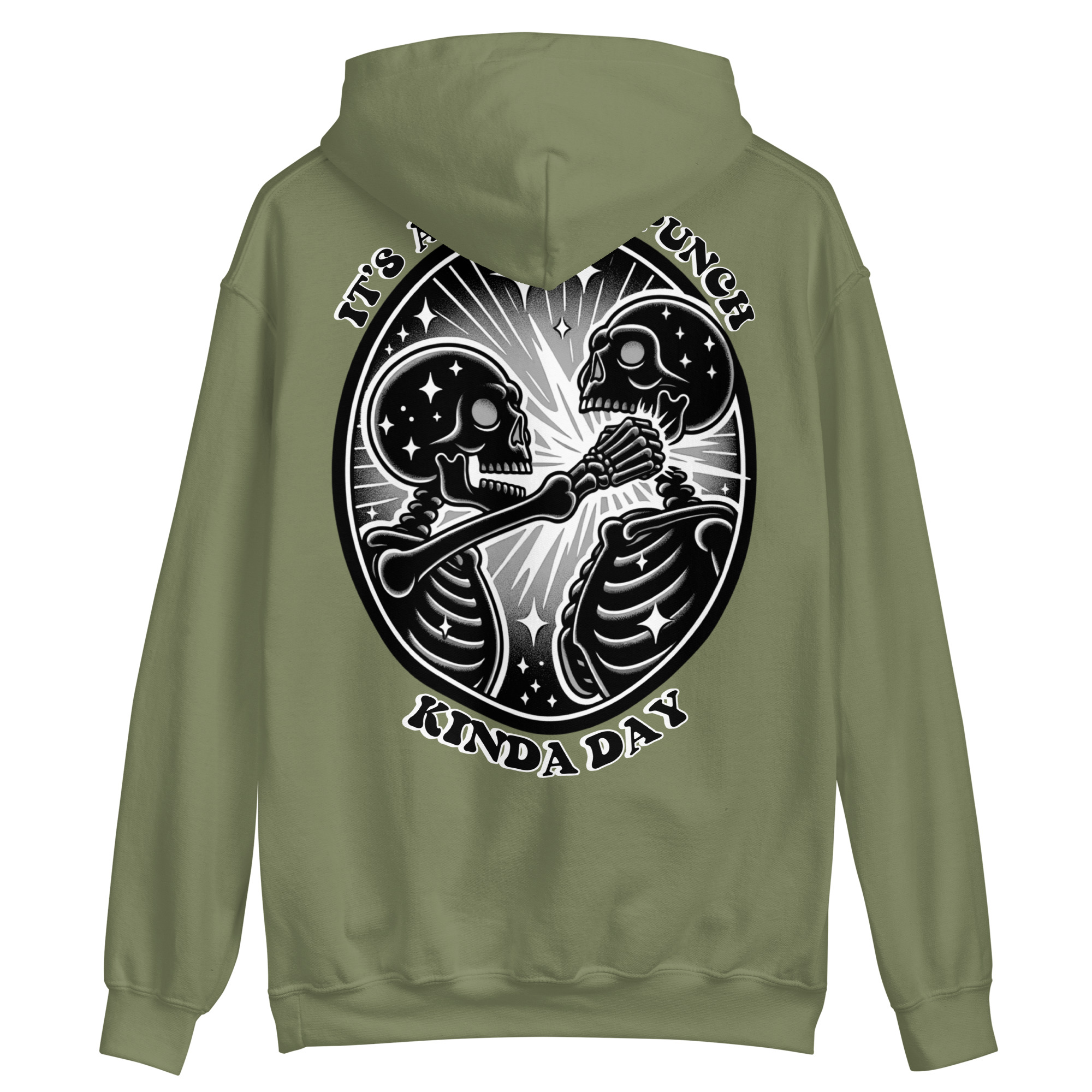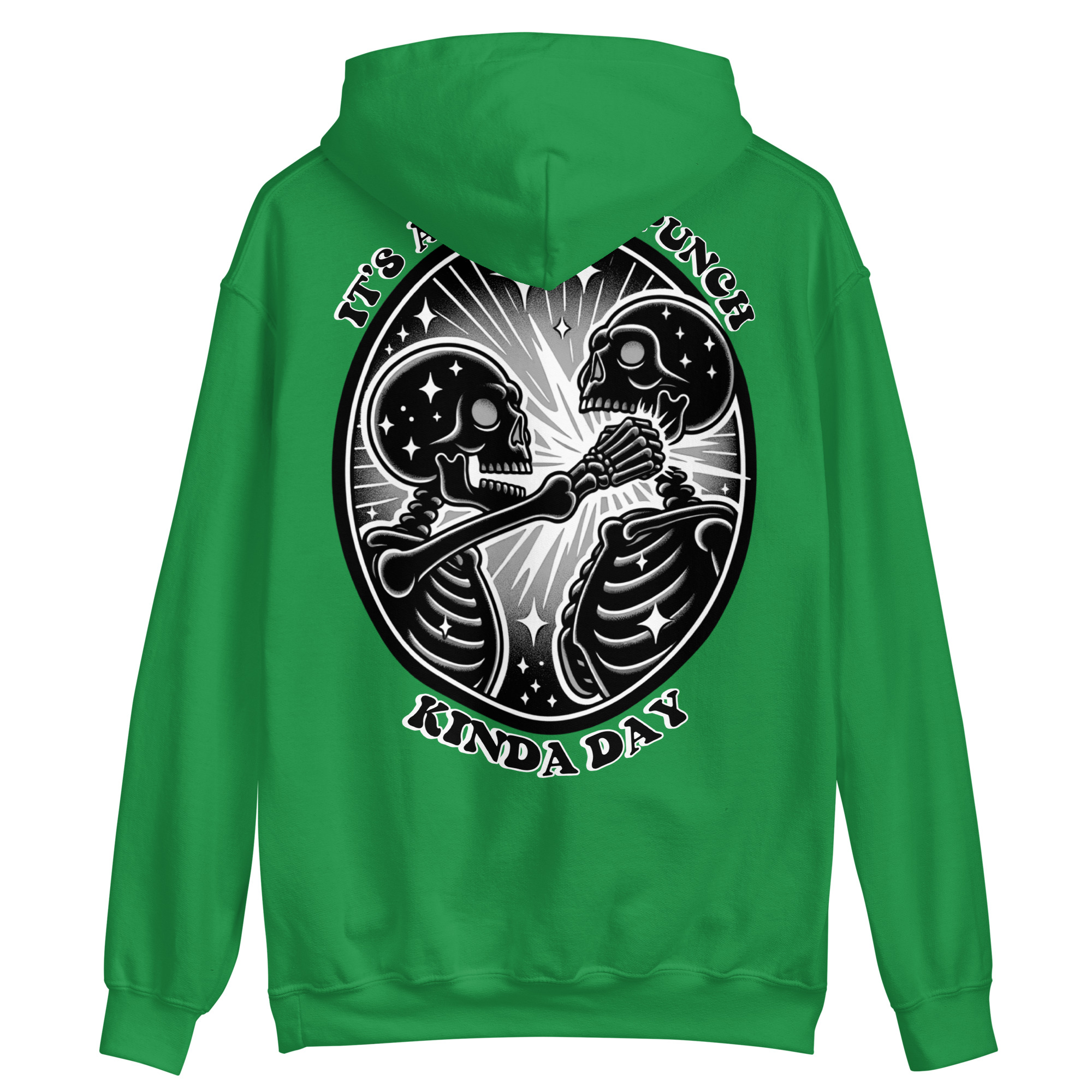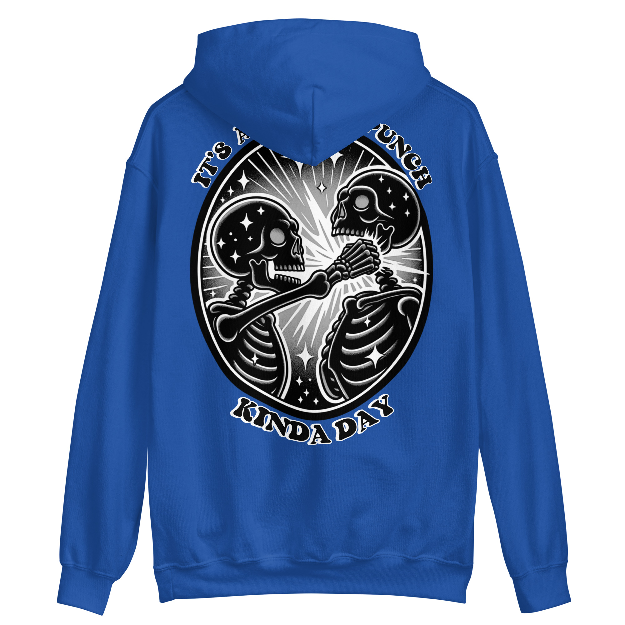 Hoodie dekorerad med två skelett som slåss och texten ’It’s a throat punch kinda day’ som motiv på baksidan. Hoodien finns i 16 olika färger som passar perfekt till både män och kvinnor som älskar attityd.