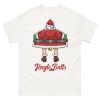 Snygg jultröja med korta ärmar med ett stort julmotiv med en jultomte som visar kulorna och texten ’Jingle balls’ som tryck på framsidan. Passar alla oss som älskar udda jultröjor. Välj mellan 13 olika färger.