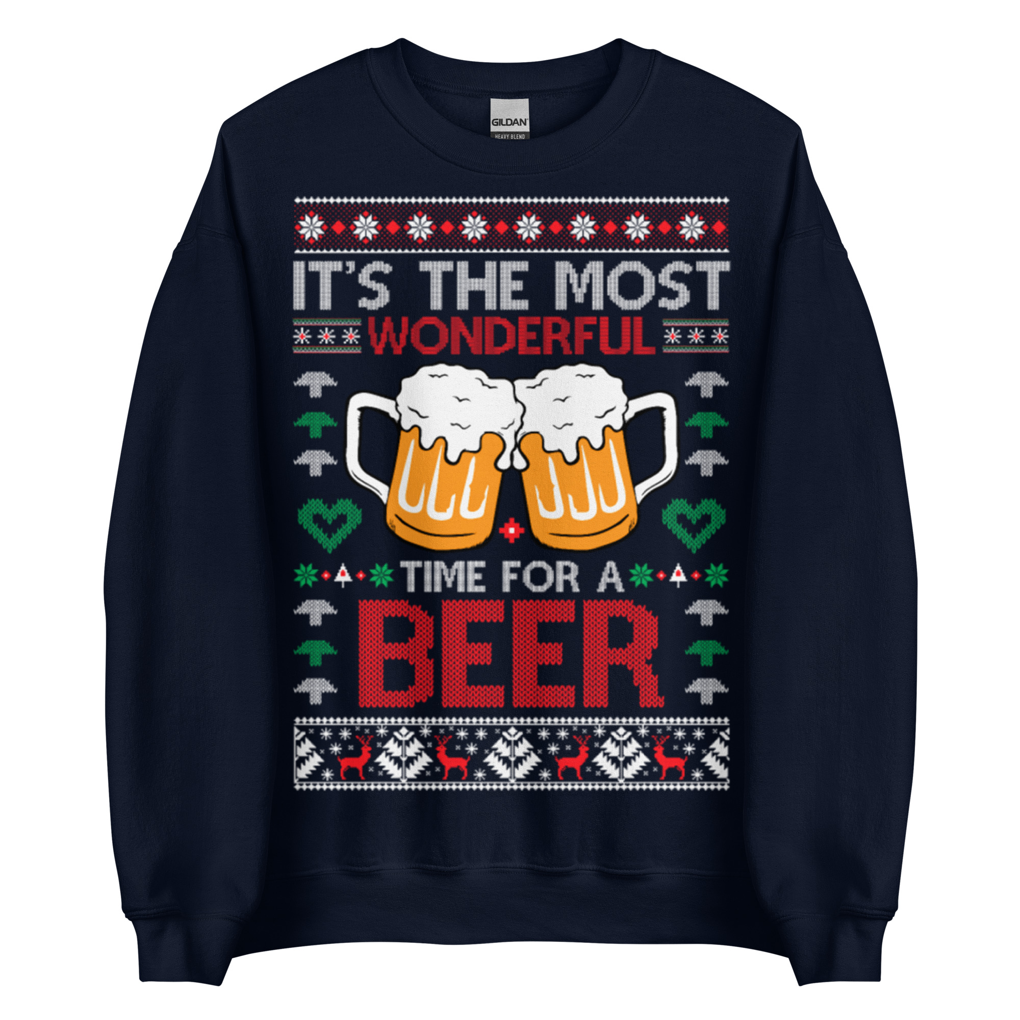 Jultröja dekorerad med ett stort julmotiv med två stora glas öl och texten ’It’s the most wonderful time for a beer’ som tryck på framsidan. Passar perfekt till alla som älskar roliga och udda jultröjor. Välj mellan tre olika färger.